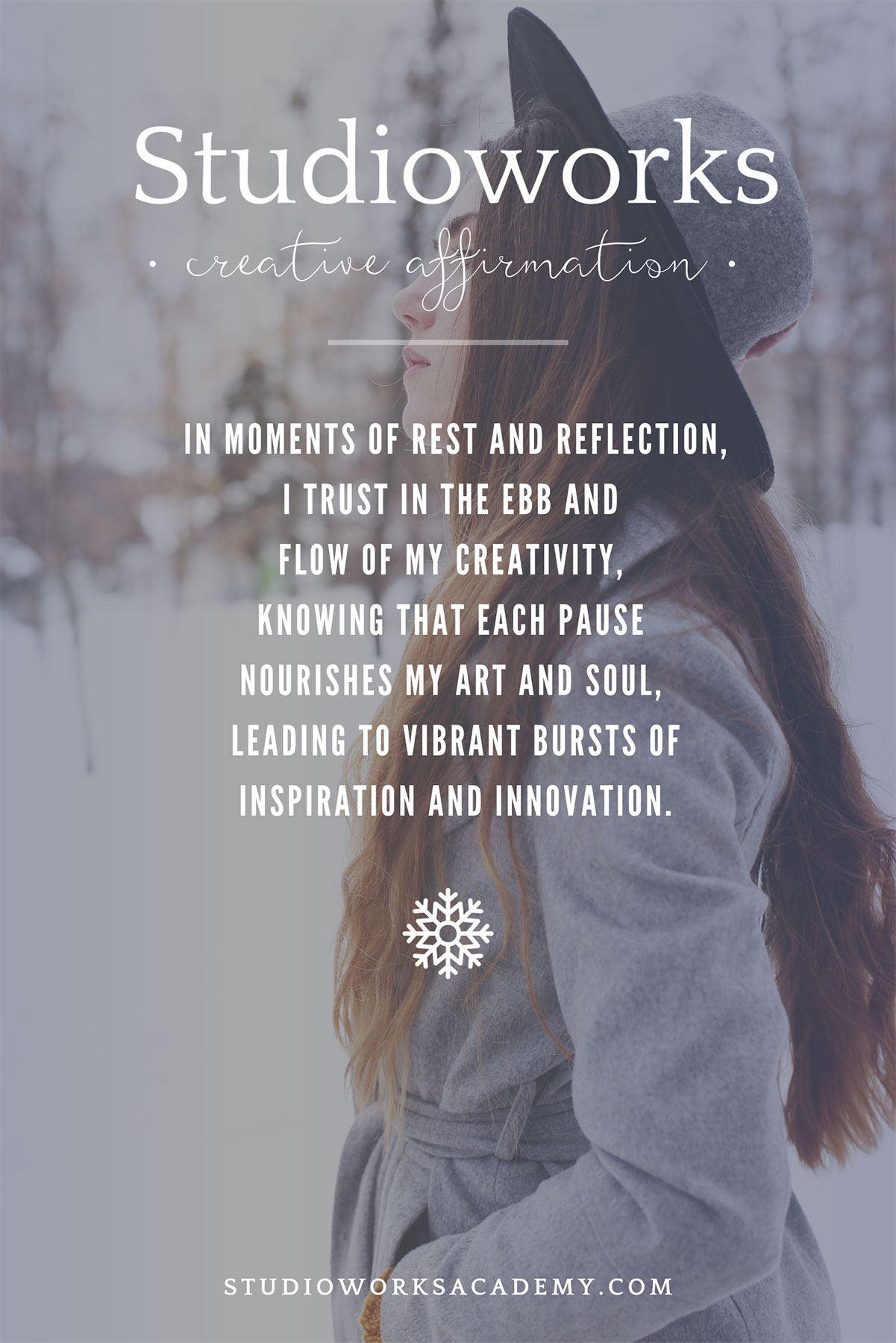 I invite you to join me in embracing this season's gentle pace. Let's find warmth in our creative endeavors and let the introspective nature of winter guide our brushes and our hearts.