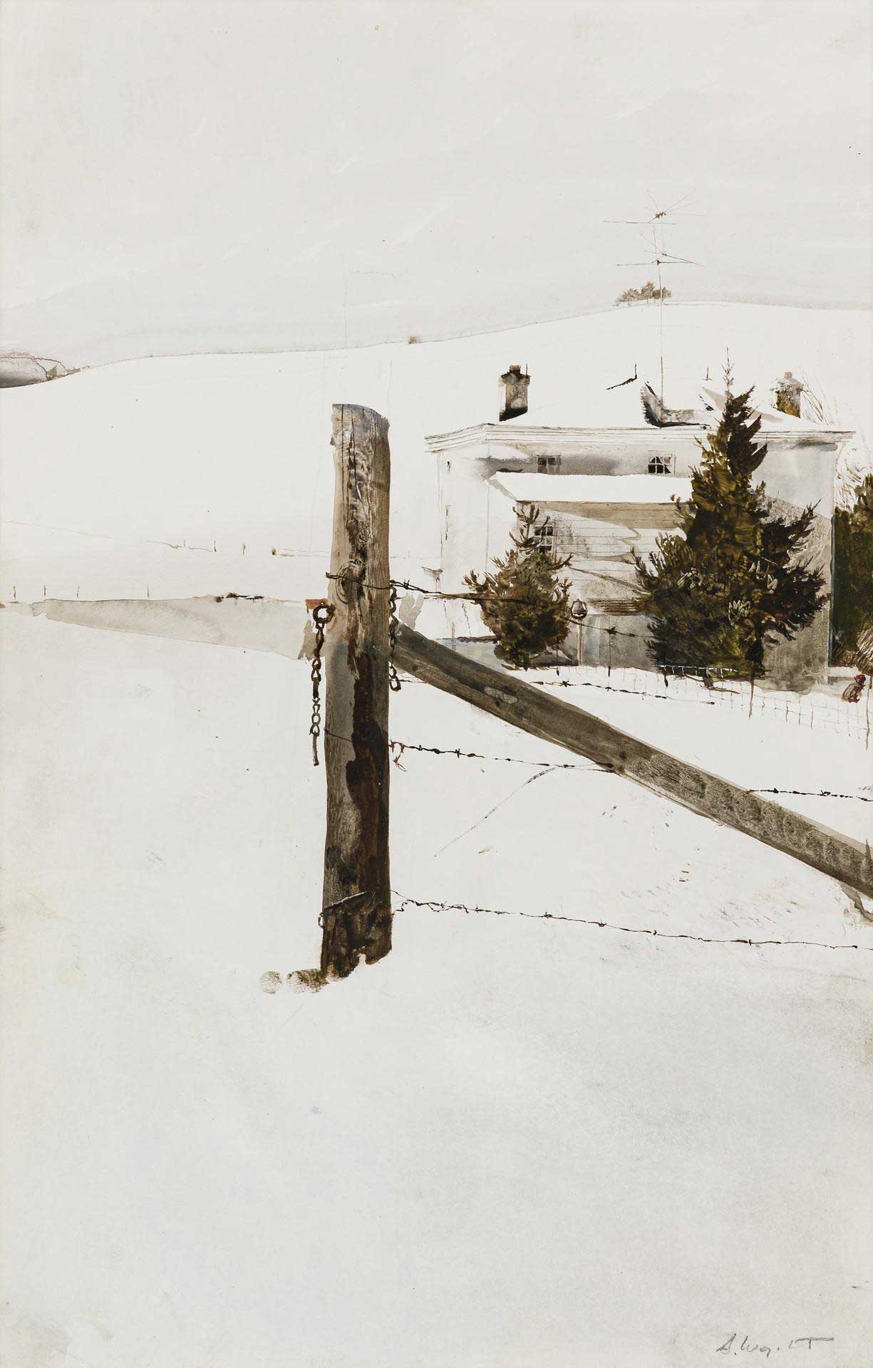 Throughout his life, Wyeth created numerous winter landscapes that are particularly evocative of the themes of rest and reflection. These paintings often feature the stark, barren landscapes of Pennsylvania and Maine, where he spent much of his time. The subdued color palette and the often solitary subjects in these landscapes evoke a sense of solitude and introspection.