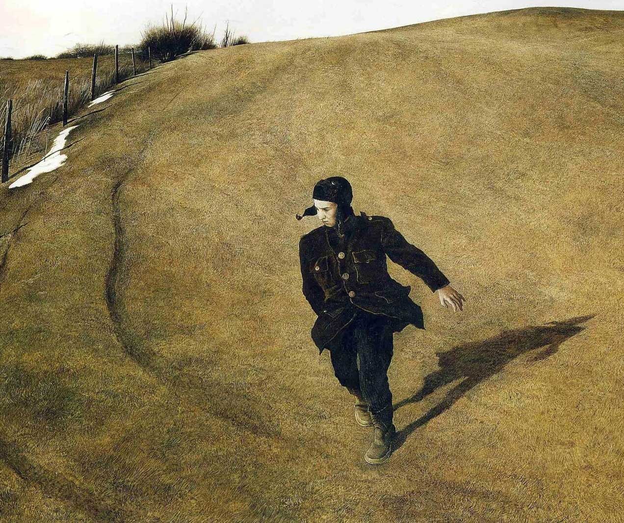 Influence of Photography: Wyeth was also influenced by photography, and this is evident in the way he framed his subjects and in his keen observation of light and shadow. He often used photographs as references for his paintings, which helped him capture a frozen moment in time with precision and clarity.