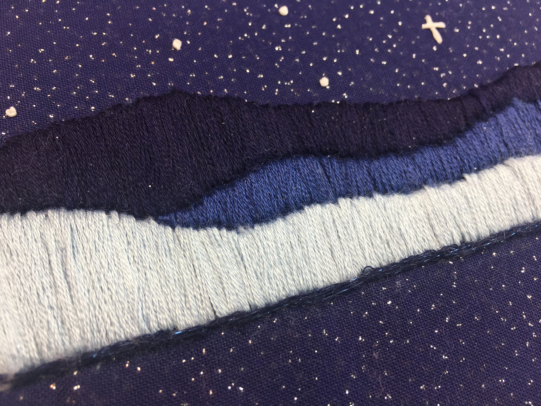 I have recently discovered how fun it is to change up the traditional embroidery designs with a more modern look. Fabric and thread choices are limitless, finished pieces can easily be framed or displayed right in the hoop.