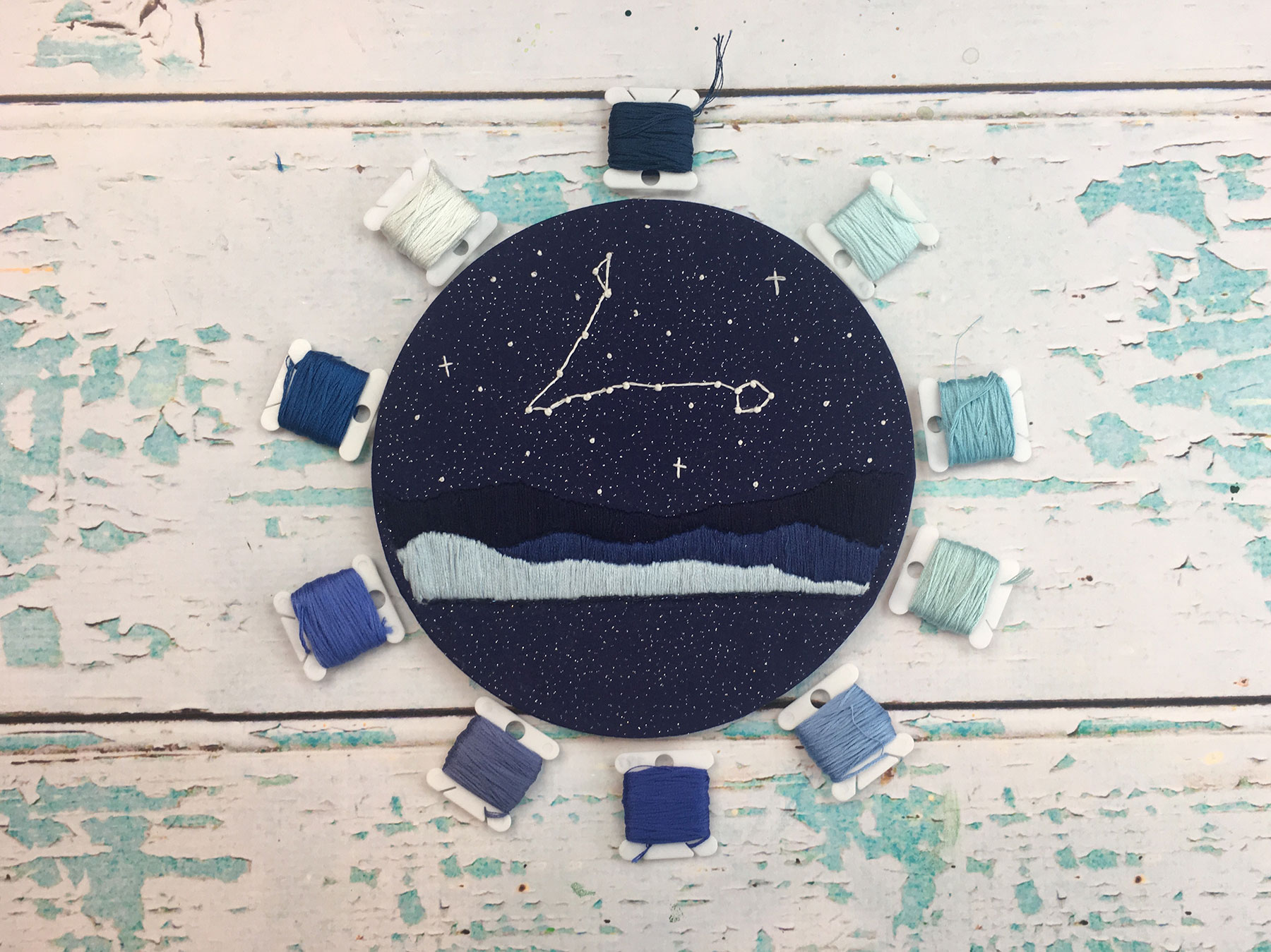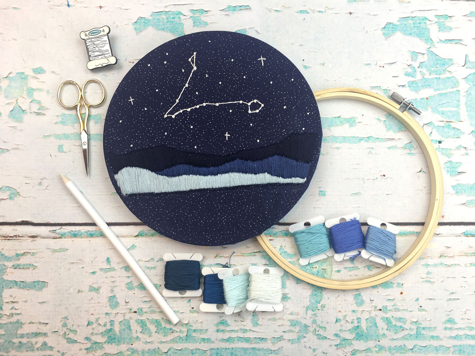 I also love how convenient working with embroidery is. With only a few small supplies needed, embroidery can really be done anywhere. I enjoy taking it with me while I wait for my daughters at their dance class. I also find it so relaxing to cozy up on the couch and slowly work away at my piece. Its something I can do with my hands while my mind can wander. I think it’s the perfect project for this month’s theme “Finding Beauty in Everyday Life”.