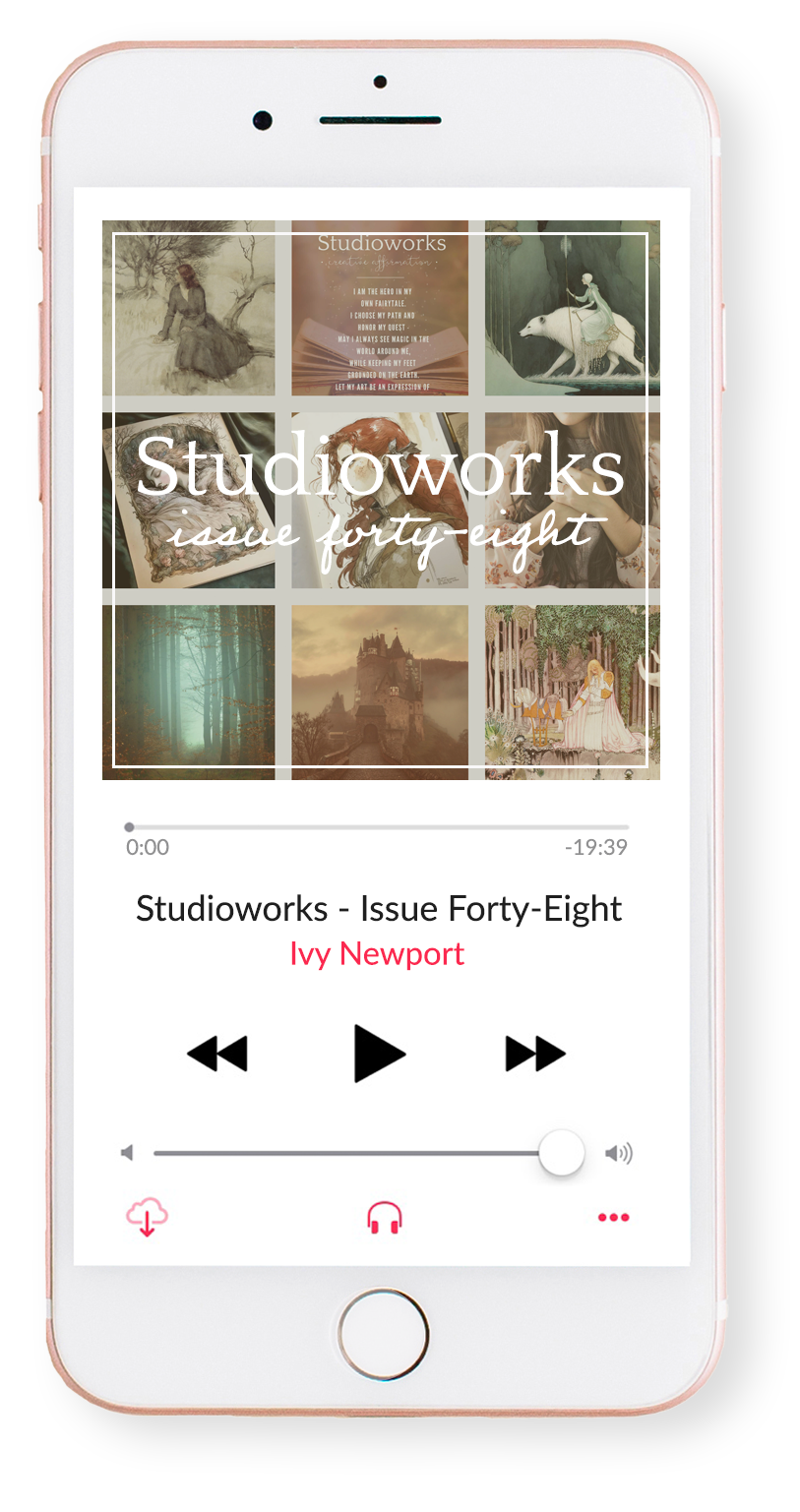 In addition, you will receive a monthly issue of the STUDIOWORKS JOURNAL. Here you’ll find articles, creative prompts, curated resources, downloadable artistic affirmations, sketchbook explorations, a full-length art lesson AND MORE!