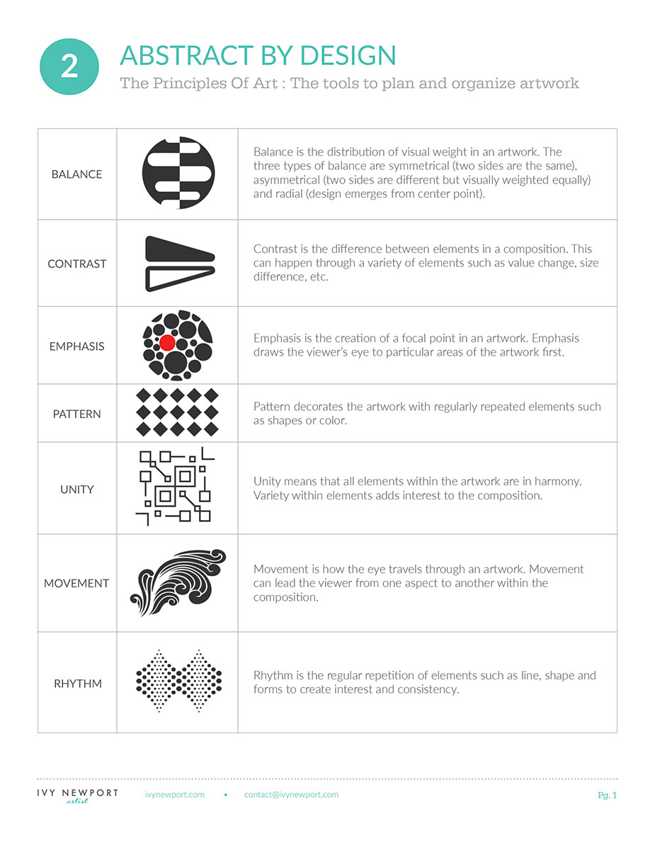 I have included downloads that discuss each of these. Become VERY familiar with these! They are key to understanding the overall success of your abstract pieces. I highly recommend printing these out and keeping them handy for when it comes time to analyze your work.