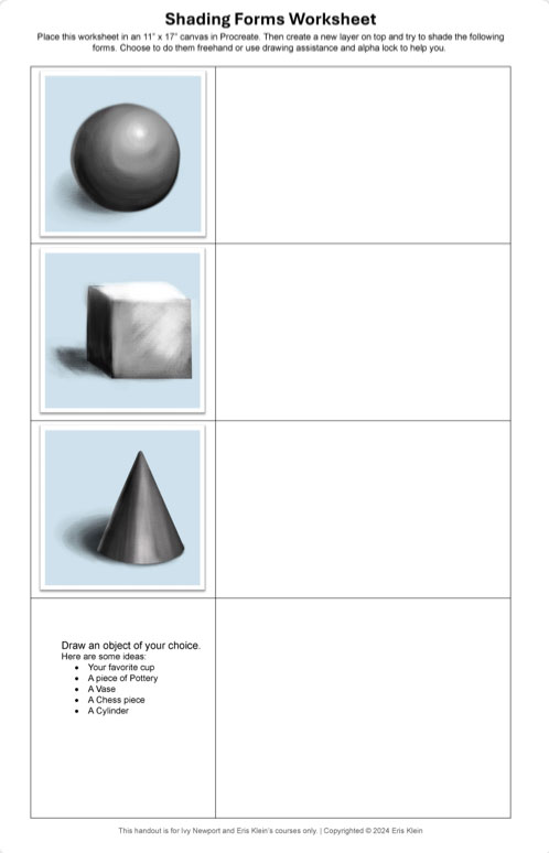 As a challenge, I have provided a shading worksheet for you to use. Download it and then place it in an 11”x17” canvas and try it out. I would love to see how you do!