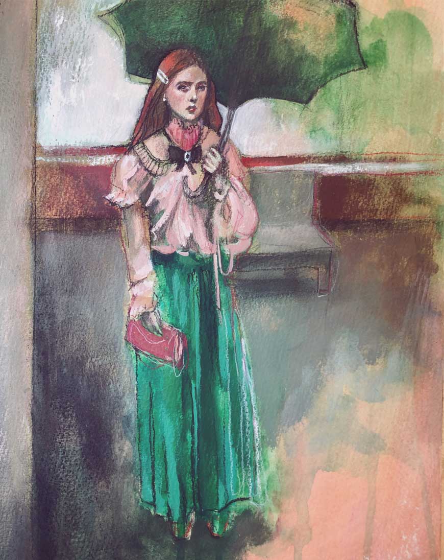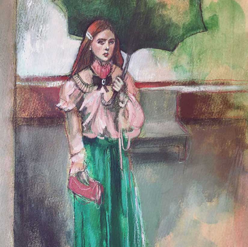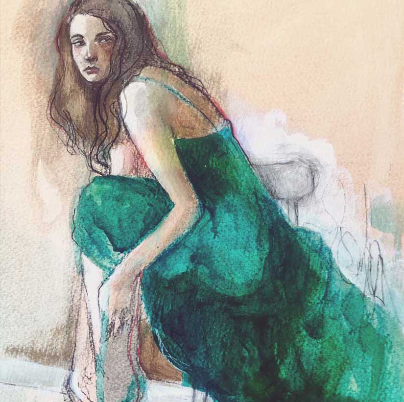 Create a figurative sketch or portrait with your subject swathed in a beautiful shade of Emerald. You can use any media you would like. For this one, I decided to jump out of my sketchbook and go bigger! Feel free to do the same! I used an image as my reference but I also created a Pinterest board to inspire you. You will not only see models in green on this board but many historical pieces of art where the artist has used emerald beautifully. A master study of one of these would be a delight to create!