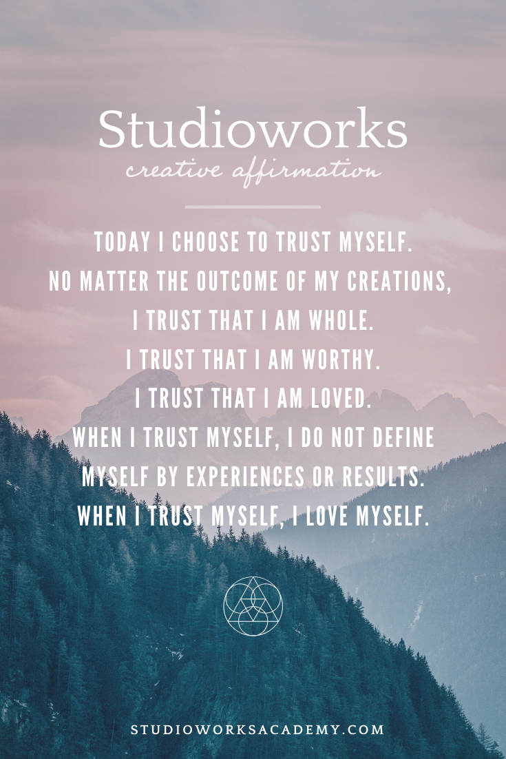 When we think of trust, we often think of loyalty. So, I ask you, are you loyal to yourself? When you promise to be gentle to yourself when creating, do you keep that promise? When you commit to not compare yourself to others, do you put a stop to the endless scroll on social media where your inner critic spends time seeing if you really measure up? Be aware of these things. Our relationship with ourselves is the most vital relationship in our life.