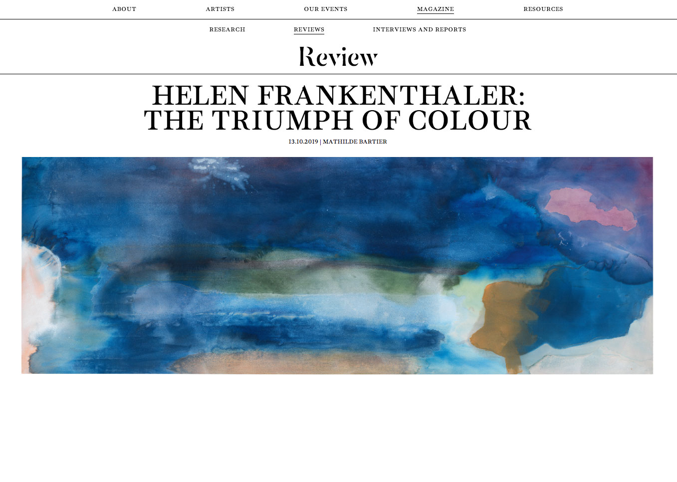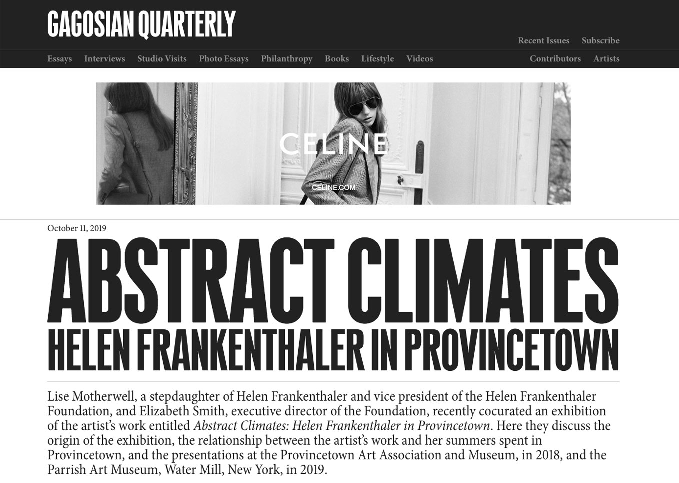 Helen Frankenthaler (1928-2011), whose career spanned six decades, has long been recognized as one of the great American artists of the twentieth century. She was eminent among the second generation of postwar American abstract painters and is widely credited for playing a pivotal role in the transition from Abstract Expressionism to Color Field painting. Through her invention of the soak-stain technique, she expanded the possibilities of abstract painting, while at times referencing figuration and landscape in unique ways. She produced a body of work whose impact on contemporary art has been profound and continues to grow.