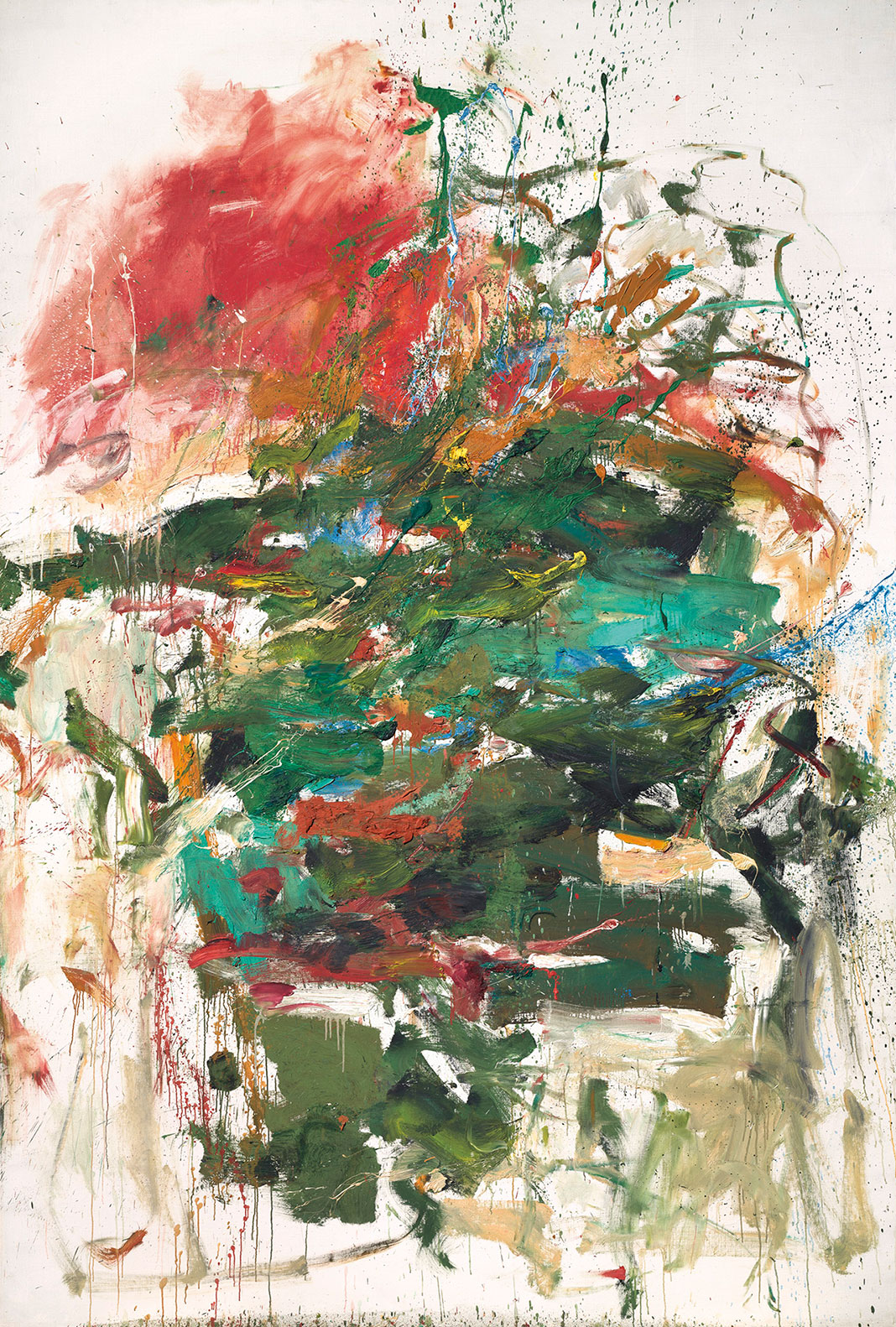 Joan Mitchell was born in Chicago in 1925. After graduating from the School of the Art Institute of Chicago in 1947, she was awarded a James Nelson Raymond Foreign Traveling Fellowship, which took her to France for a year in 1948-49, and it was there that her paintings moved toward abstraction. Returning to New York, she participated in the famous “9th Street Show” in 1951, and soon established a reputation as one of the leading younger American Abstract Expressionist painters. She exhibited regularly in New York throughout the next four decades and maintained close friendships with many New York School painters and poets.