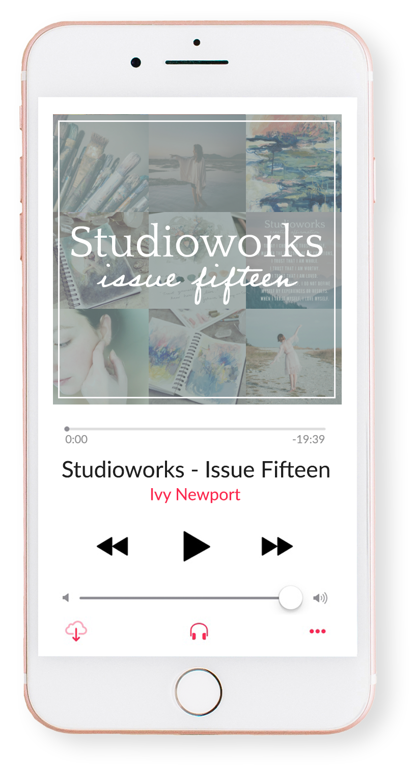 You can also listen to this month’s issue of the Studioworks journal. I find I love listening to books, podcasts and music while I draw, paint or go on a long walk. Enjoy.
