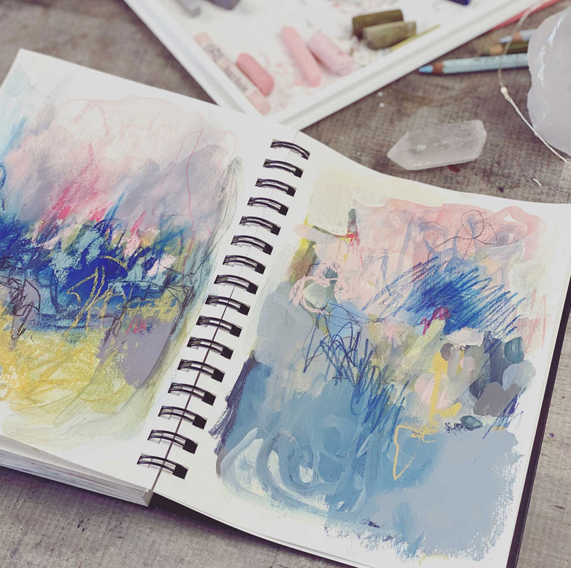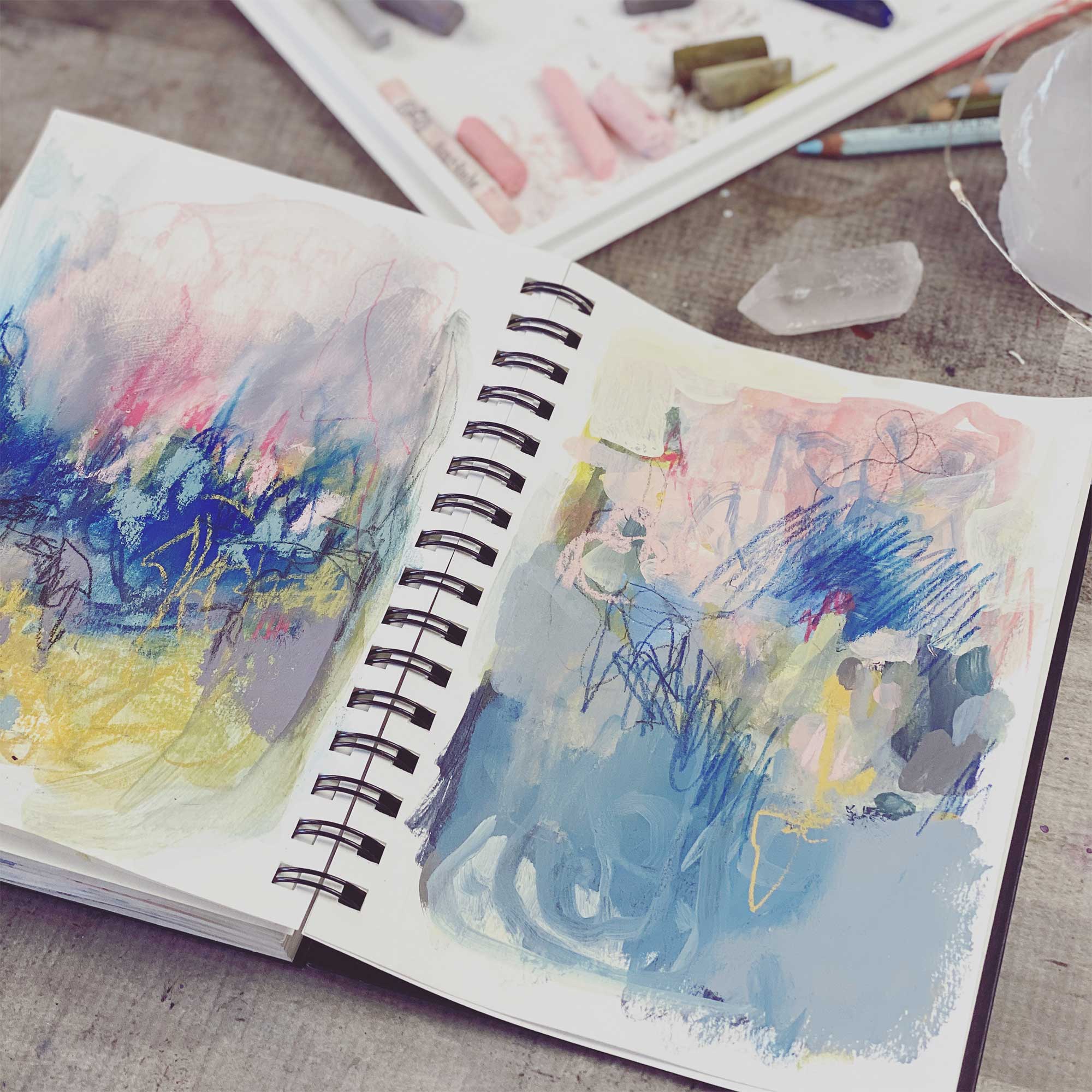 Our sketchbook theme this month is Abstraction. Since we are focusing on self trust, it only makes sense that we explore the mysterious unknown landscape of abstraction in our sketchbooks. When we separate ourselves (and our self worth) from the outcome of our creations we deepen our self-trust and self compassion. With Abstract art, it is truly about being open to the discovery, mystery and experimentation that is inherent in this work.