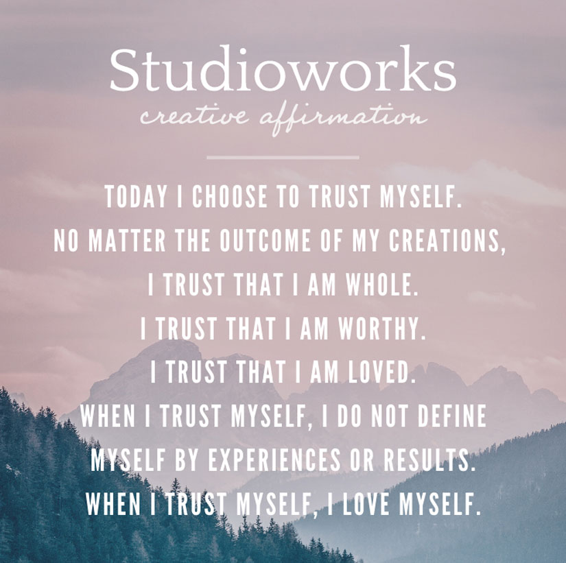 Welcome to Issue #15 of the StudioWorks Journal! As always, I’m super grateful you are here with me and I’m excited to share this with you. This month, I wanted us to explore the topic of trust in our creative process. As artists, it is imperative that we cultivate self-trust. Not an easy feat by any means but one worth pursuing. Art invites us into a world of possibility and unknowing – this is both thrilling and terrifying…this is where trusting ourselves comes in.