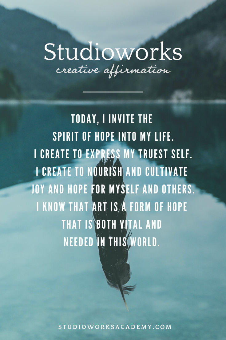 Welcome to Issue #16 of the StudioWorks Journal! As always, I’m super grateful you are here with me and I’m excited to share this with you. This month, I felt very called to focus on the theme of hope. Let’s face it, our world is such that often we can lose sight of hope. We can easily be shadowed with negativity and pessimism.