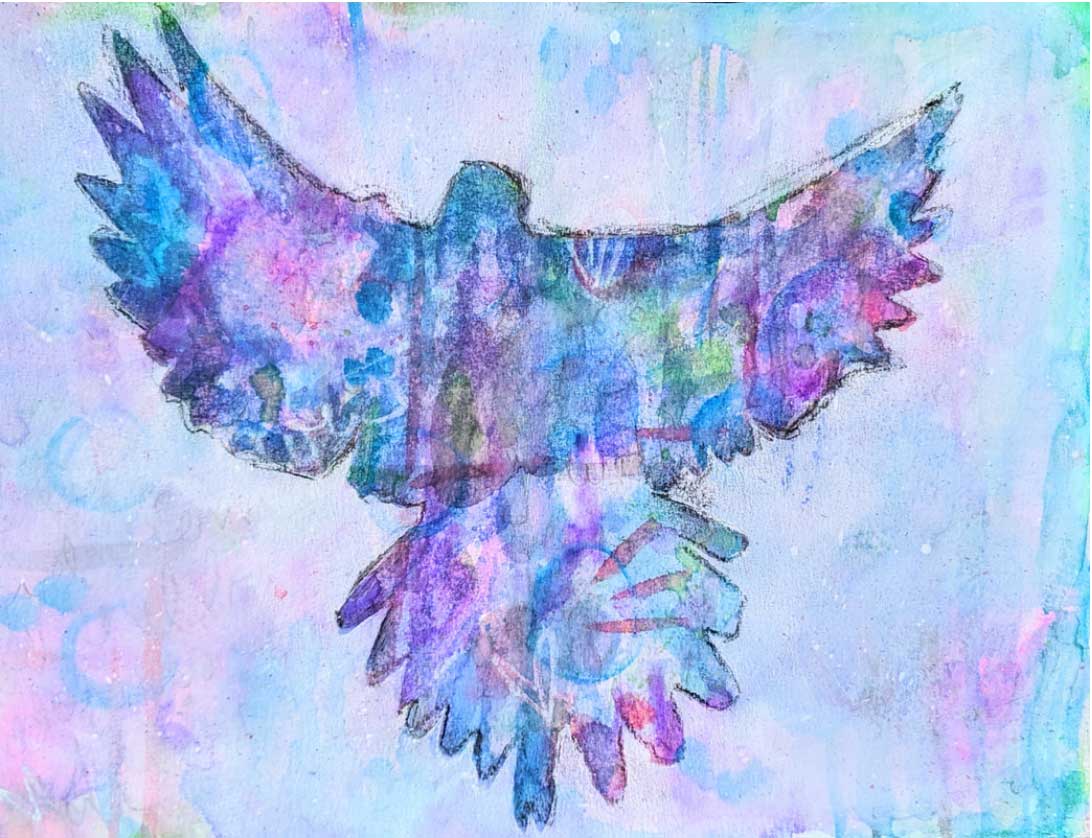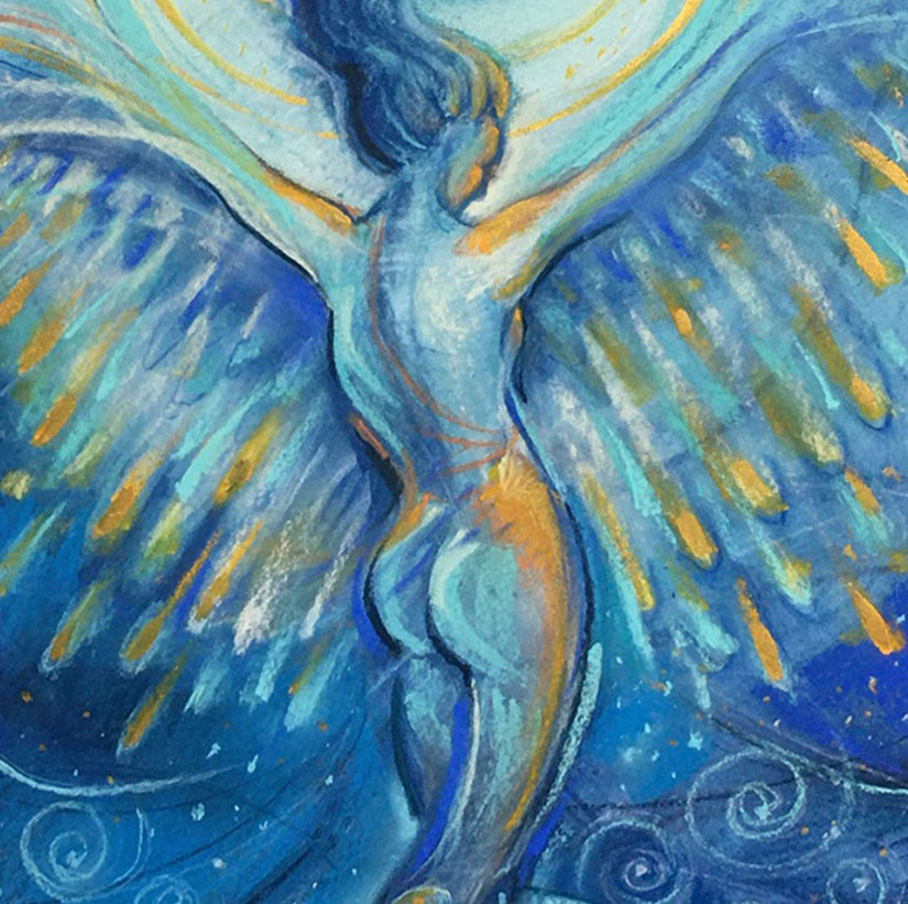 In this lesson, Eris demonstrates how to create an expressive angel of light, using gestural figure drawing along with a beautiful intuitive process. However, don’t worry if you don’t know how to draw a figure, she will give you some brief tips to help you get started.