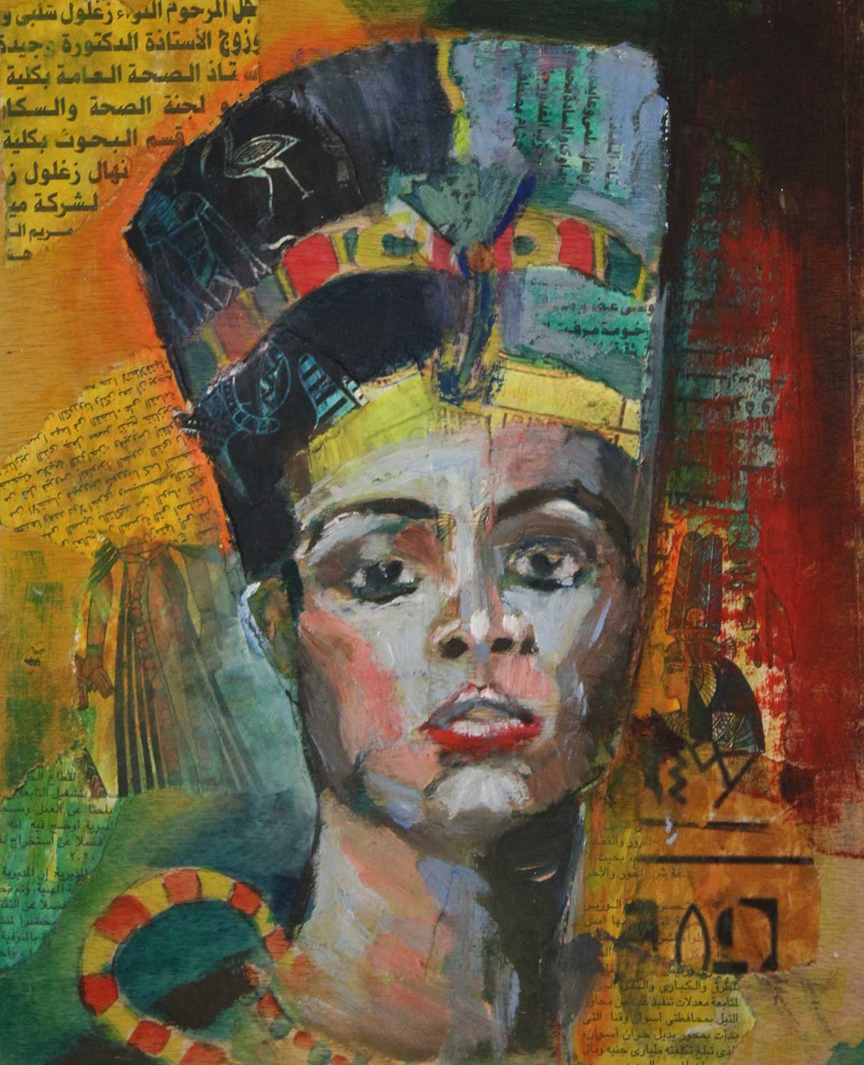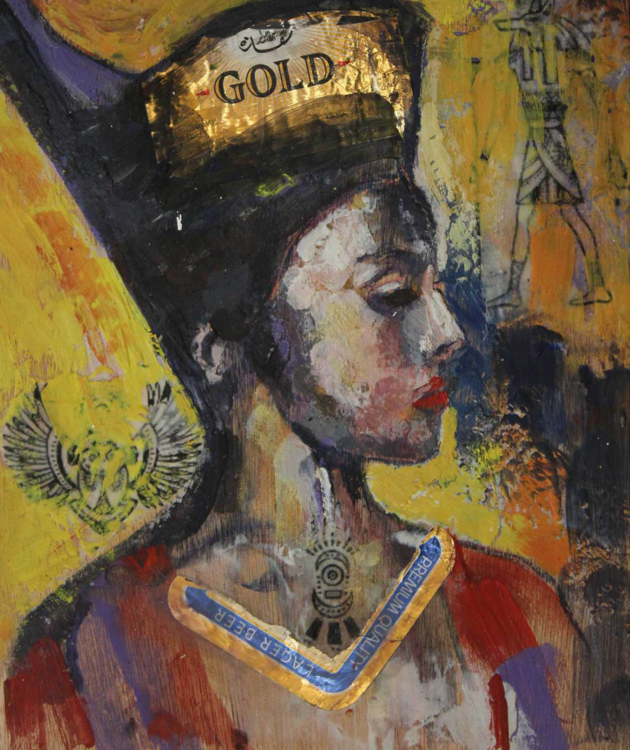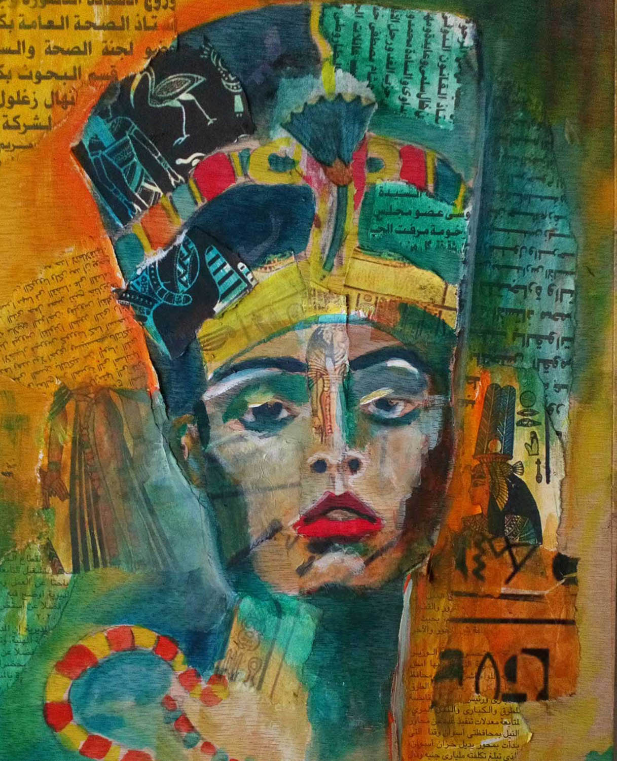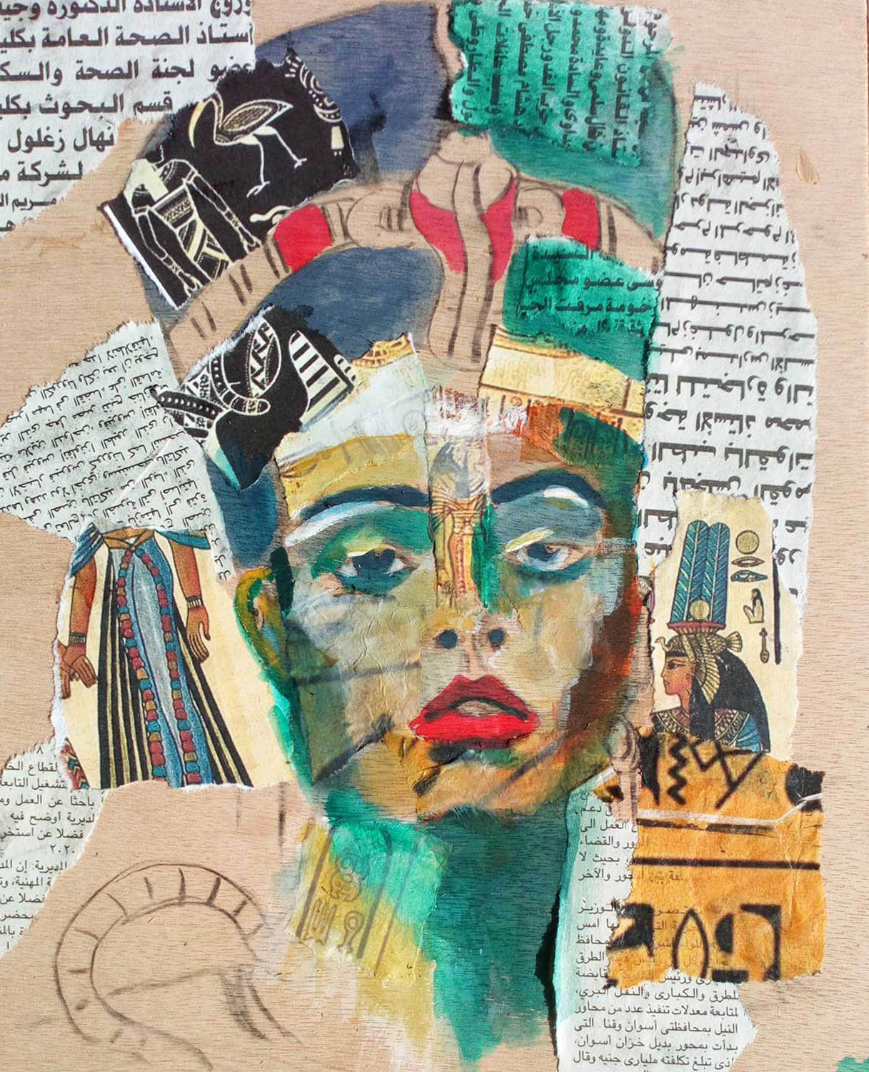 Queen of the Nile – collage and encaustic on birchwood panel.