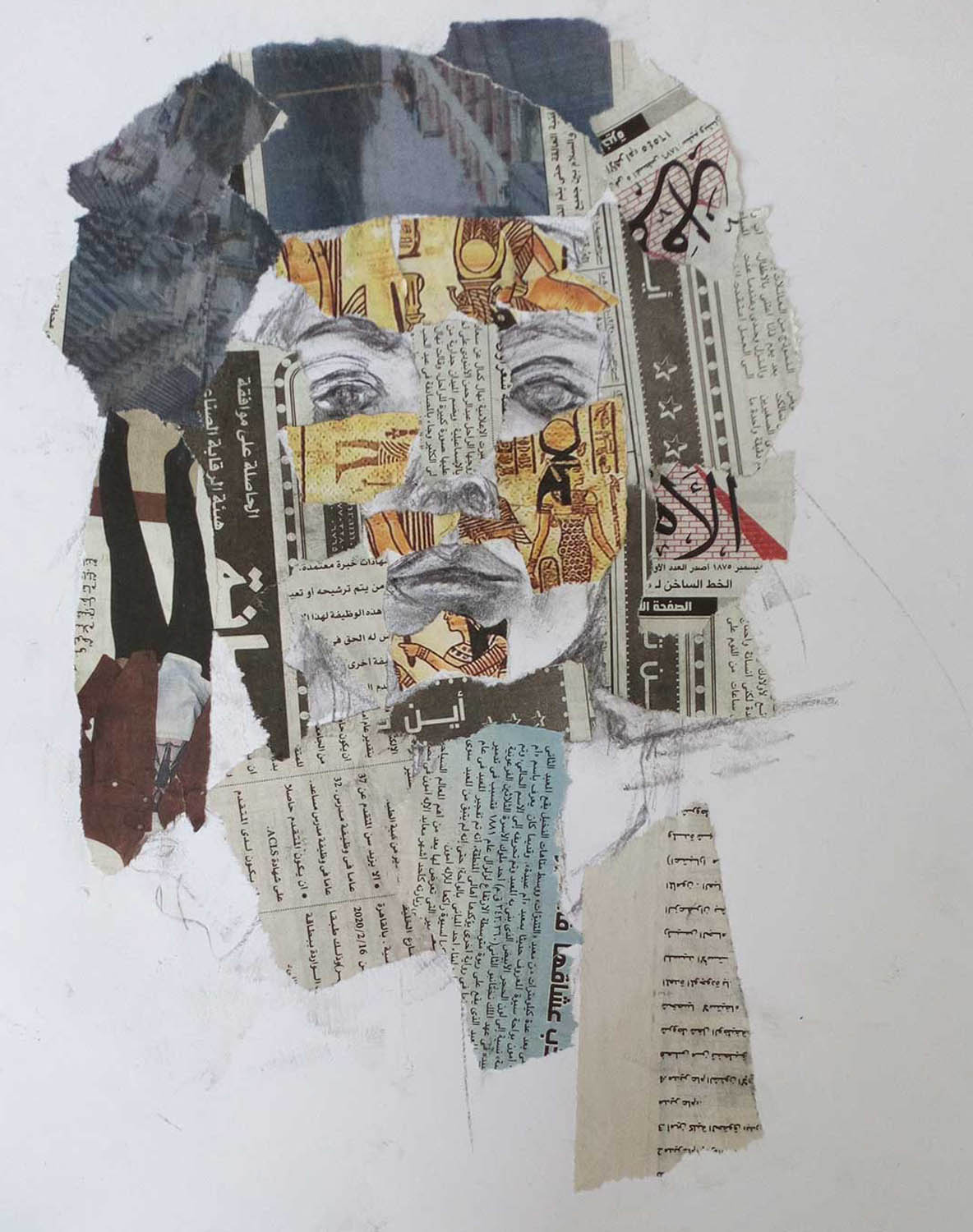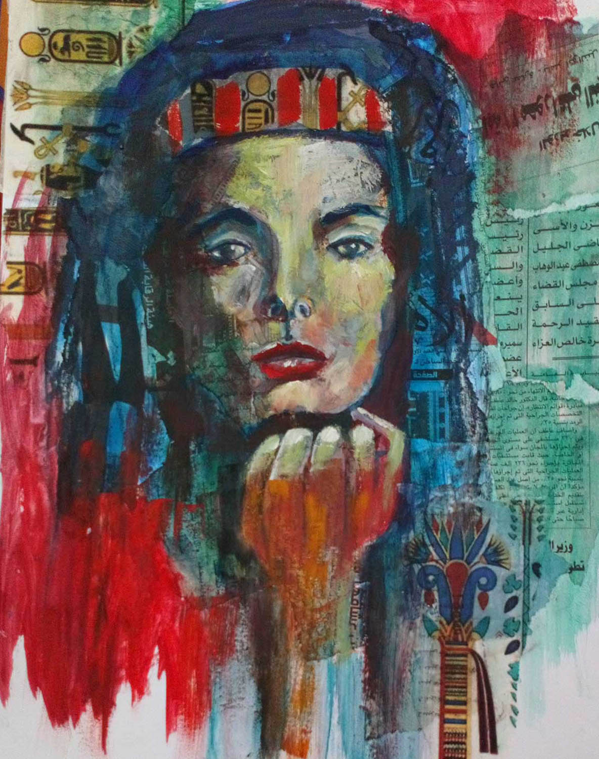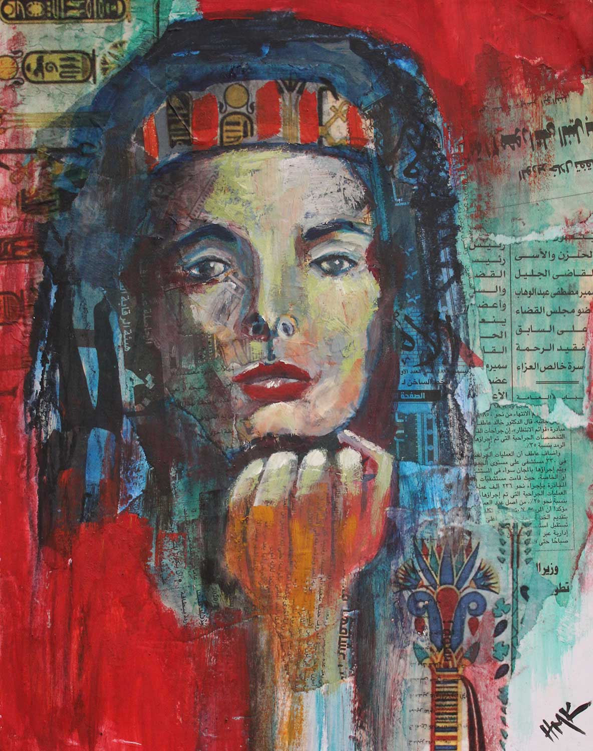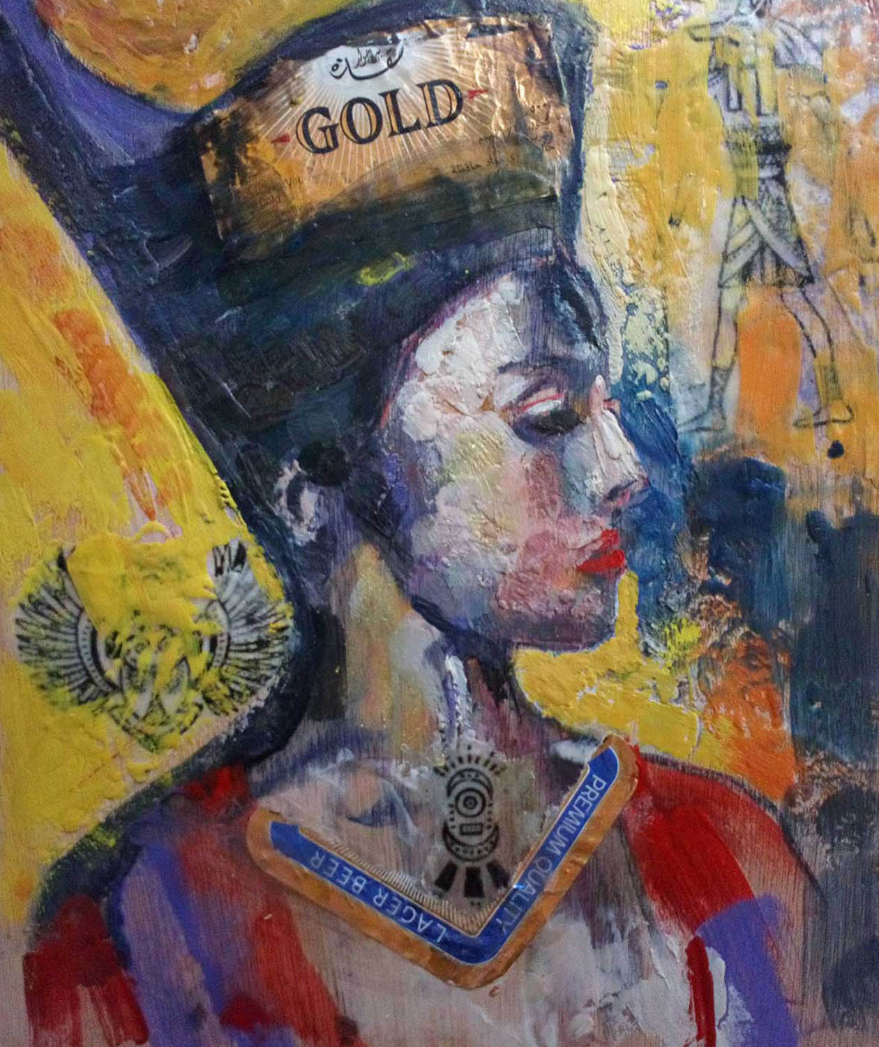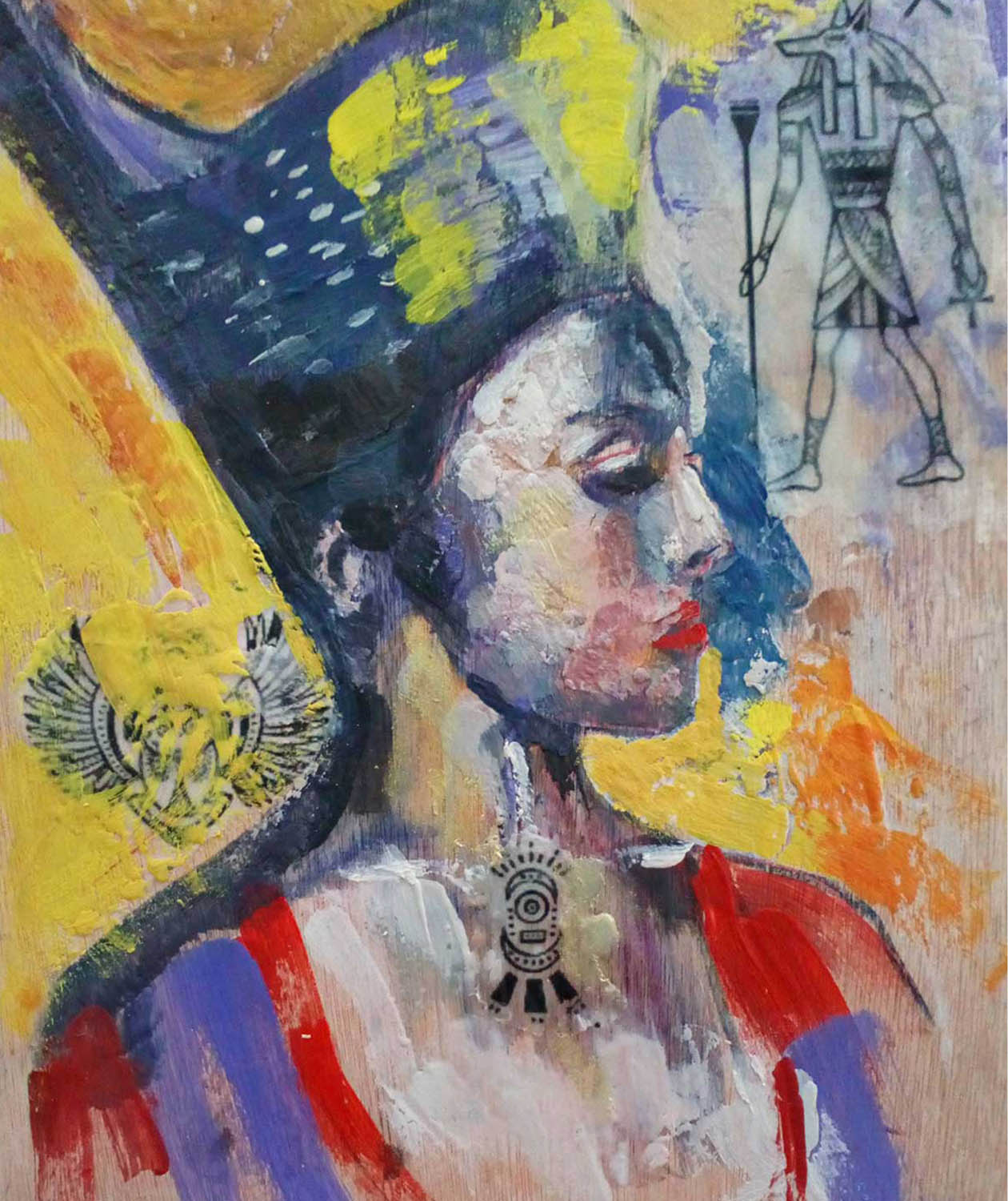 Queen of the Nile – collage and encaustic on birchwood panel.