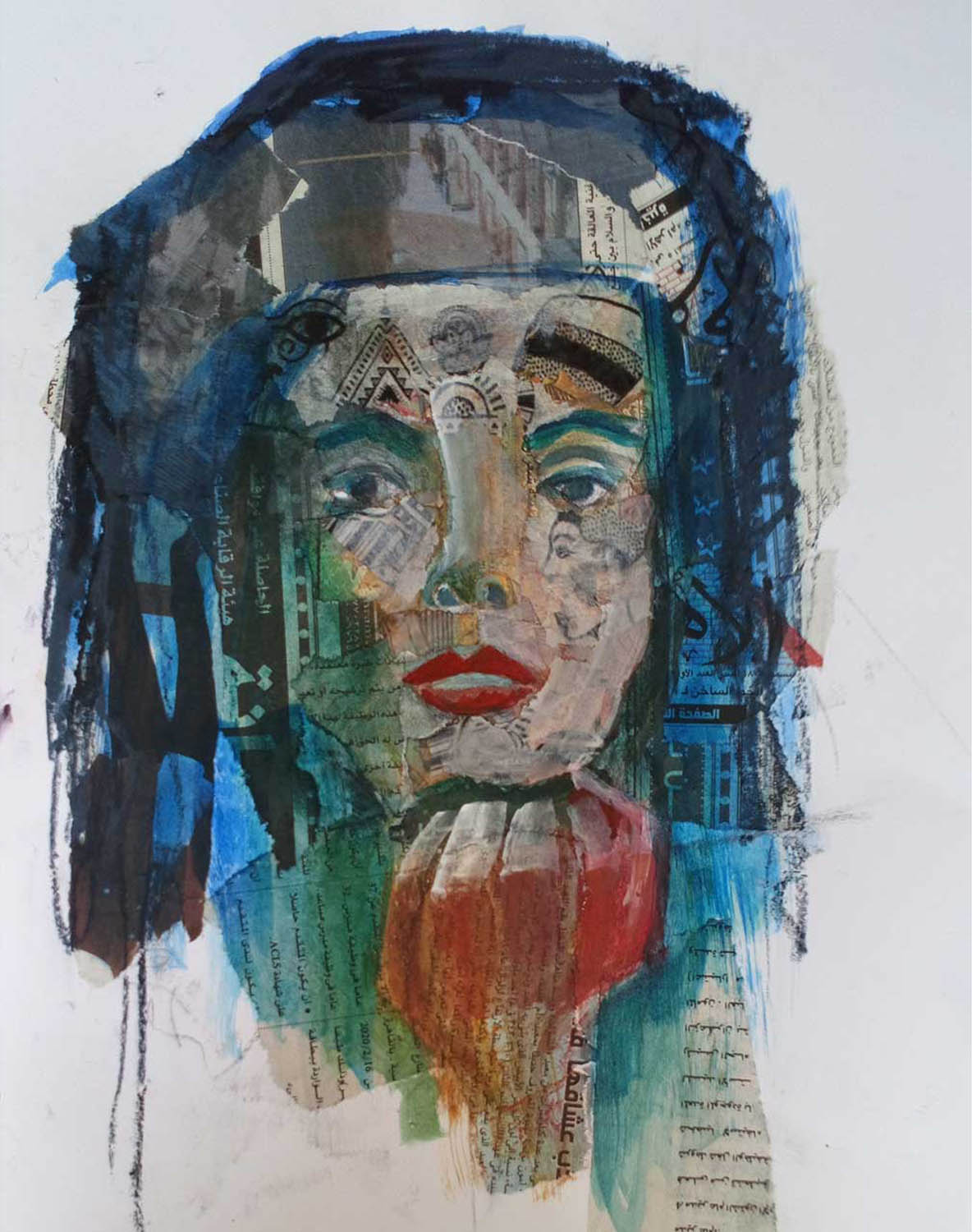 Woman of Mystery – collage, oil and cold wax medium on paper, mounted onto birch wood panel.