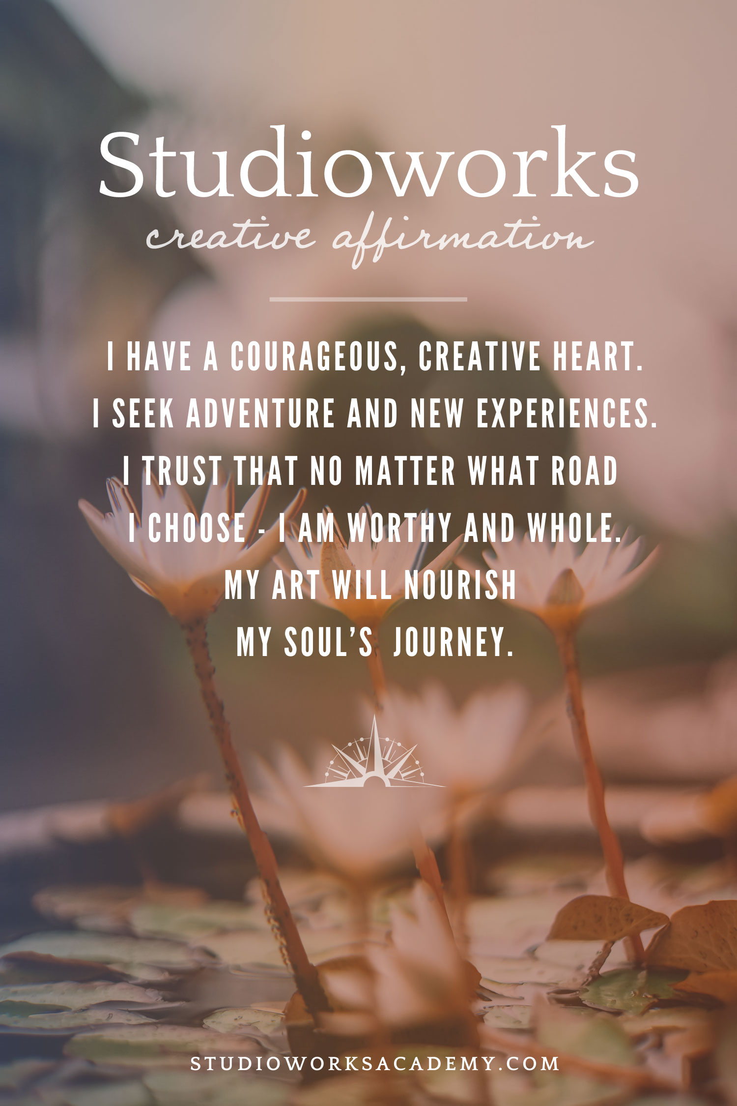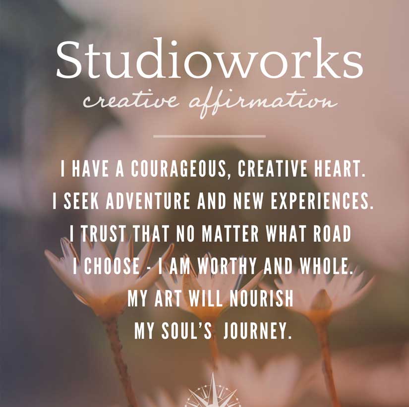 Each month we will have a positive affirmation. I recommend you print out this affirmation and put it in your sketchbook or somewhere in your studio. Recite the affirmation out loud each time you show up to create. Saying words aloud is powerful and can begin to re-write some of our own limiting beliefs or calm our fears. Try it now…
