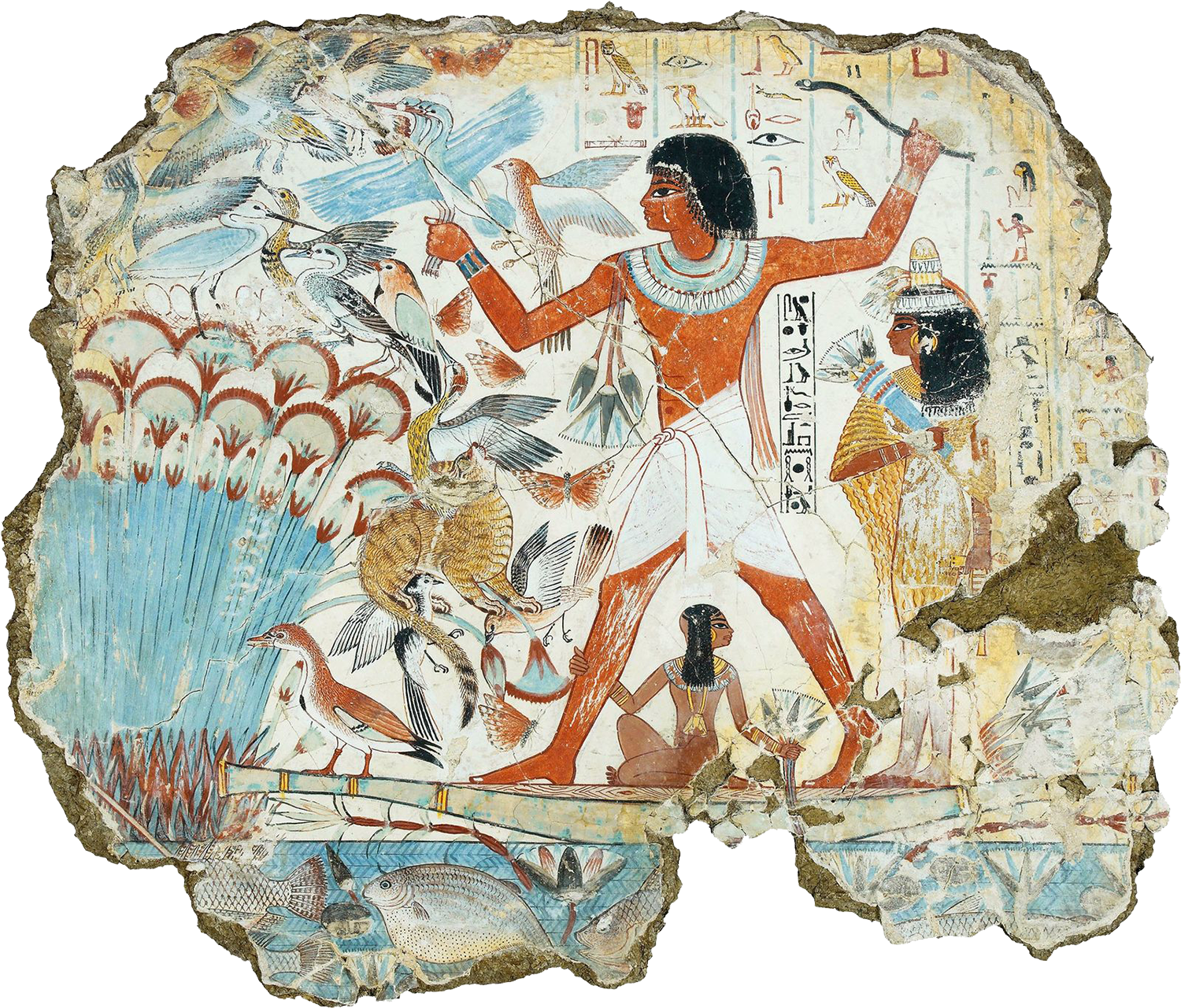 Egyptian art is known for its distinctive figure stylization used for the main figures in both relief work and painting. These figures had parted legs (where not seated) and the head is shown in profile however the torso was depicted front-facing. The figures also have a standard set of proportions, measuring 18 “fists” from the ground to the hairline on the forehead.