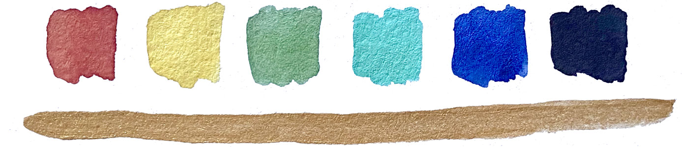 Please remember, our explorations in our sketchbook are really just access points to get you into the flow. However, they can also be seeds for new ideas, concepts, and themes in your art. Some of them will be more about writing and others more about drawing and painting. You will see below three prompts and exercises explained and photographed from my own sketchbook. You are welcome to expand upon, invent, and experiment with your own concepts too. Use our color palette if you want to. You will see I stay in that theme for my explorations. These may feel silly at first but let your inner artist play.
