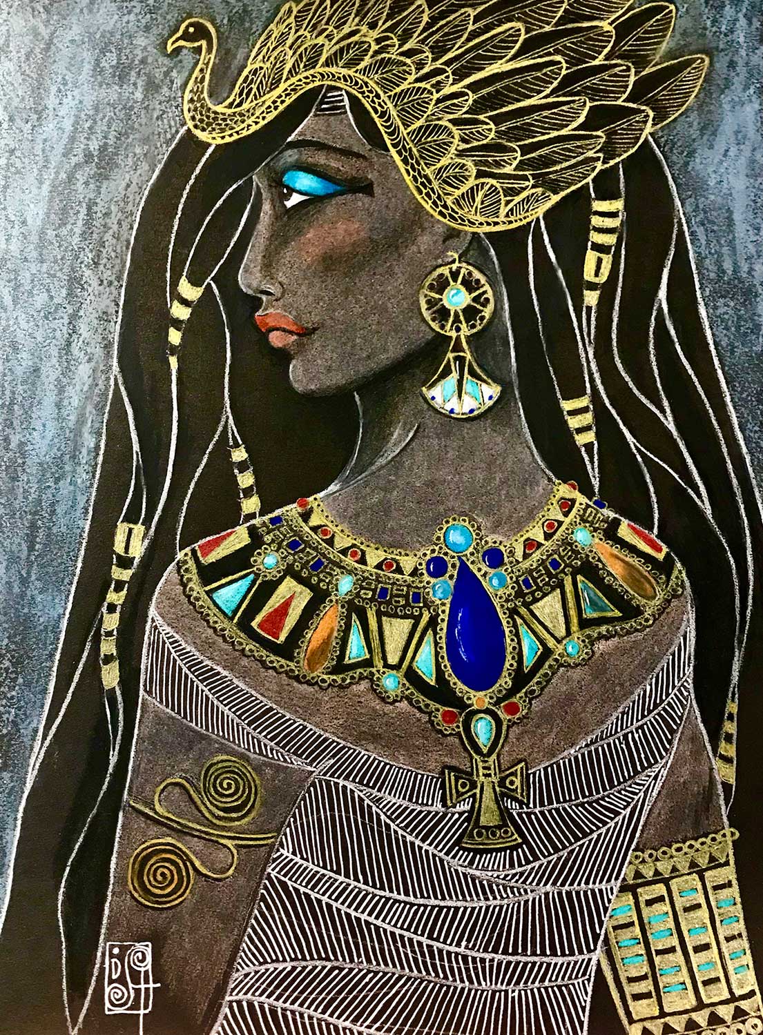 Create your own vision of an Egyptian Goddess. I chose Isis but feel free to illustrate one that inspires you. Use any mediums you wish or create a collage dedicated to the goddess you choose! Why does this Goddess resonate with you?