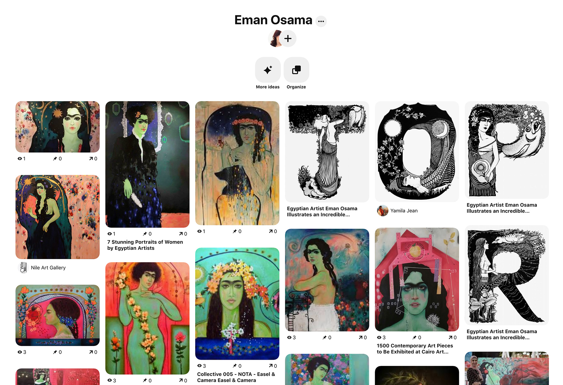 However, I couldn’t resist bringing you two awesome contemporary Egyptian artists! I have cultivated Pinterest boards for you so you may peruse their work and enjoy all the beauty of their creations! I absolutely adore both of these artists’ work* and it’s beautiful and fascinating to see the Egyptian cultural influence in their pieces!