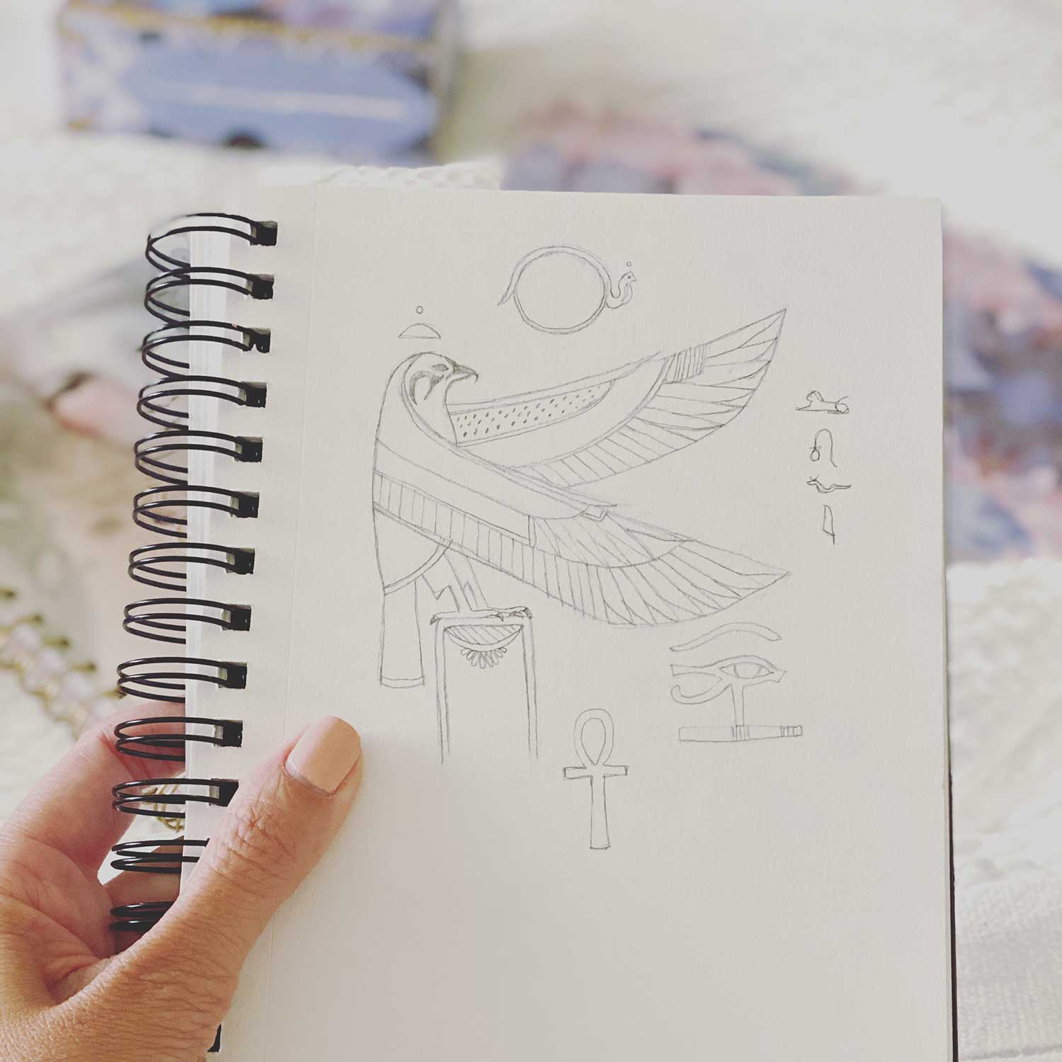 Our sketchbook theme this month is adventure, magic, myth, and of course, Egypt. We will be exploring some ways for us to connect with the ancient beauty and mysticism of Ancient Egypt. We will be inspired by their use of color, pattern, and design as well as their incredible stories and mythology.