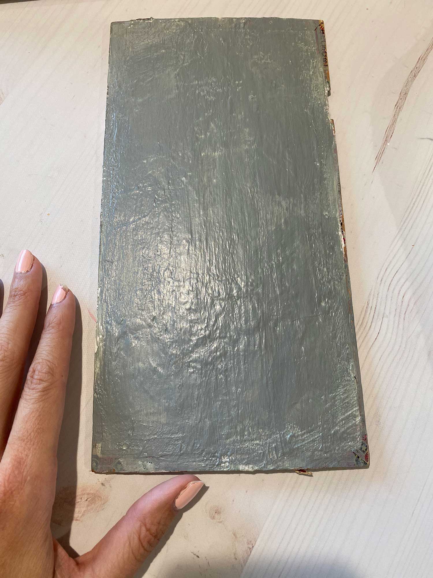 Do 2-3 layers of White gesso…I used rough brush strokes because I wanted some texture. You can sand yours if you want it to be smooth.