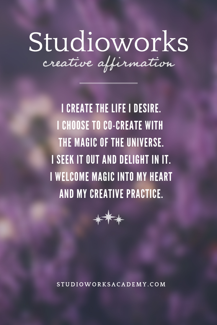 Each month we will have a positive affirmation. I recommend you print out this affirmation and put it in your sketchbook or somewhere in your studio. Recite the affirmation out loud each time you show up to create. Saying words aloud is powerful and can begin to re-write some of our own limiting beliefs or calm our fears. Try it now…