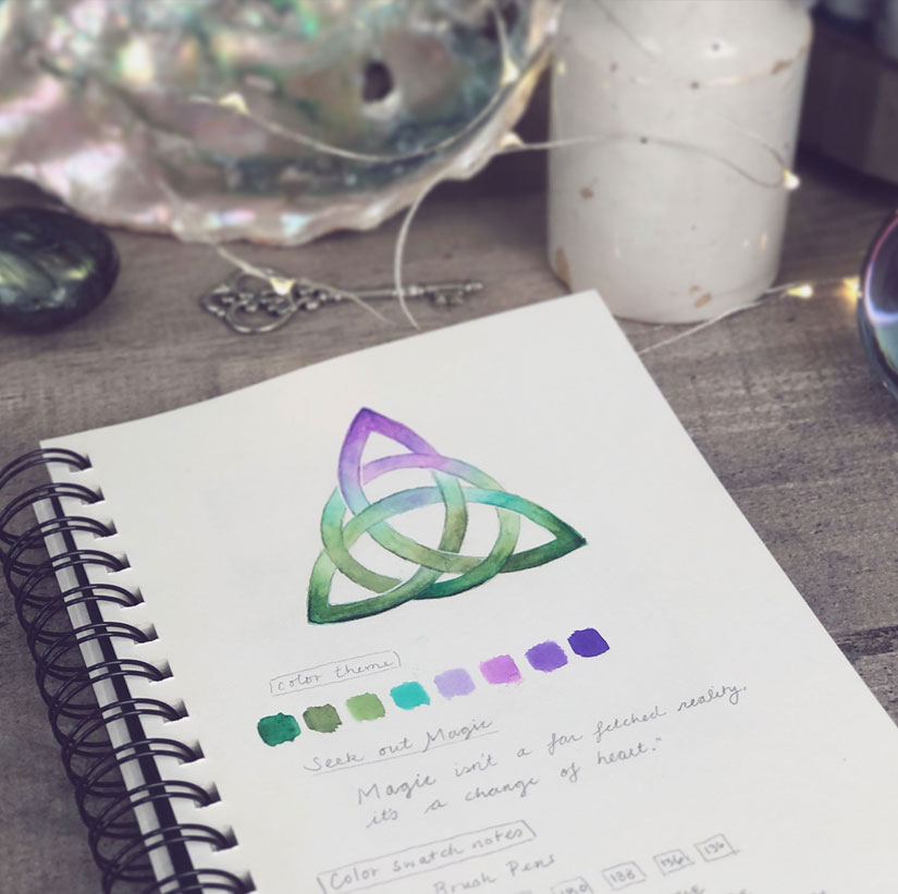 Our sketchbook theme this month is magic and story. While these will mean different things to everyone, I encourage you to explore this theme. We will be doing some Irish themed work but if another culture, myth or story calls to you, please do learn more and sketch, paint and play with all the beautiful inspiration you cultivate!