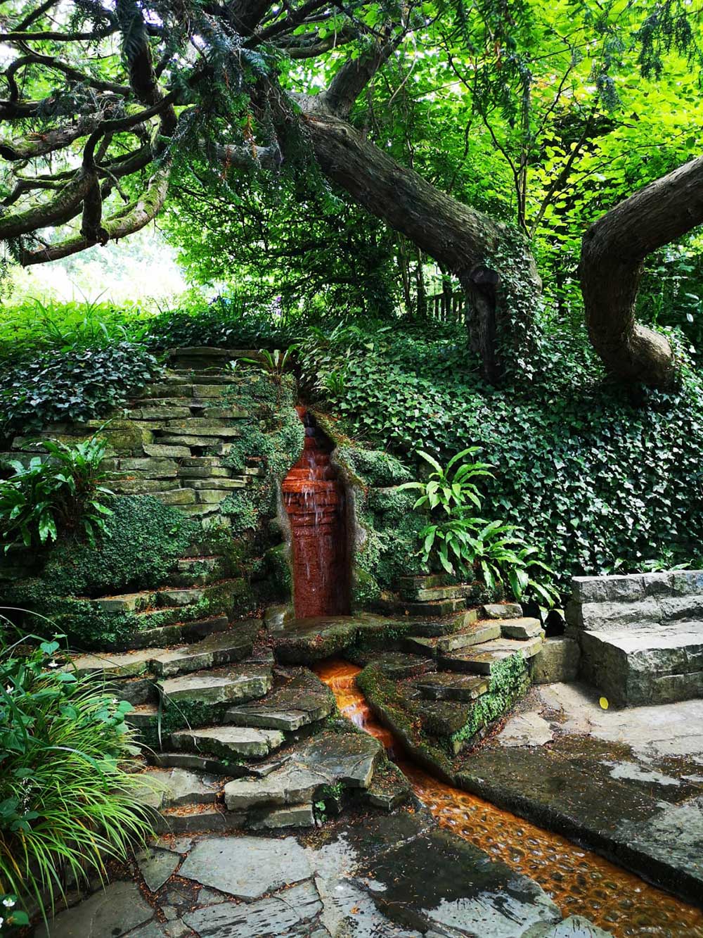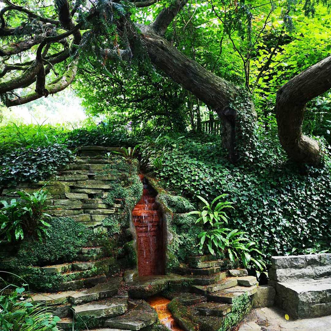 The Chalice Well lies in a protected area of natural beauty, at the foot of a narrow valley running between the Tor and Chalice Hill and is an integral part of the sacred landscape in and around Glastonbury. For over two thousand years the Red Spring, or Blood Spring, has flowed ceaselessly and is a place where people have gathered to drink the waters and find solace, peace and inspiration.