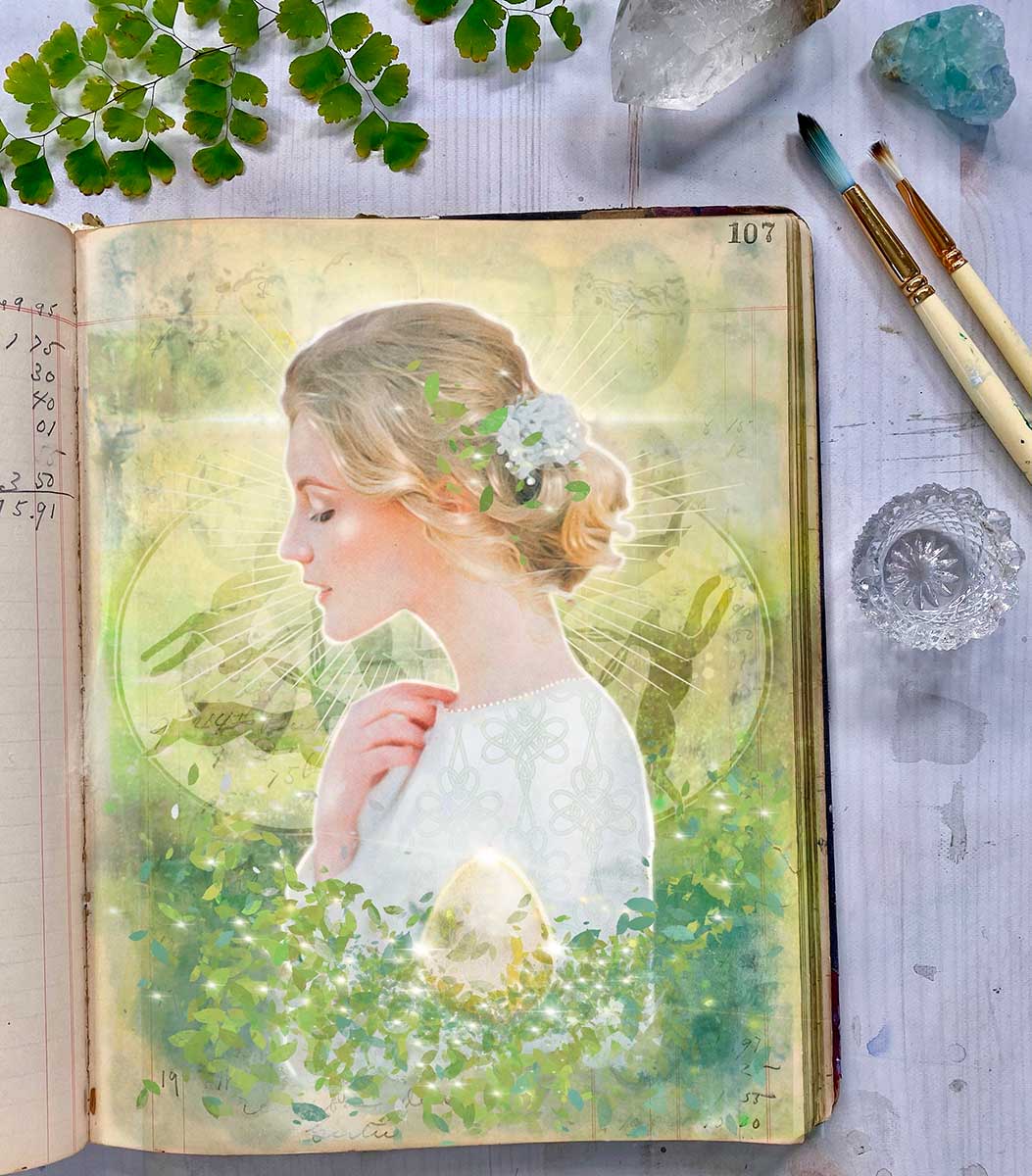 We will experience the Spring Equinox on March 20th this year. A point of perfect balance on the journey through the Wheel of the Year. Night and day are of equal length and in perfect equilibrium – dark and light, masculine and feminine, inner and outer, in balance. The year is now waxing and at this moment light defeats the dark. The natural world is coming alive, the Sun is gaining in strength and the days are becoming longer and warmer. Us Artists are slowly unfurling from our cozy winter studios and taking more time outside to reconnect with nature and feel the sun on our faces. This is the perfect time to connect with Ostara.