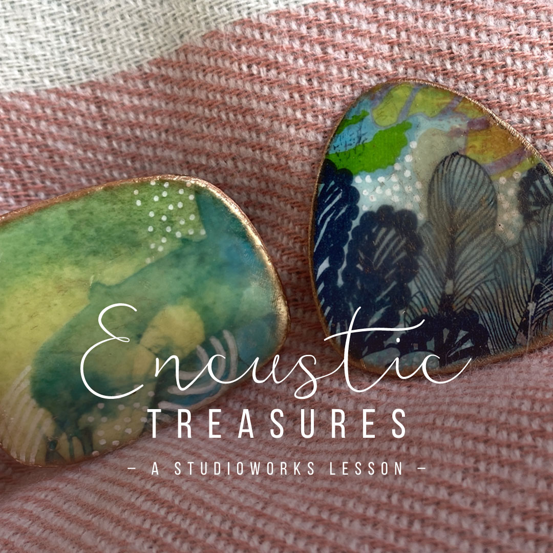 I’m excited to share a wonderful and unique lesson from one of our Studioworks community members! Susan was game for a challenge so when I asked her to teach a lesson for us she agreed! Susan will be walking us through the beautiful process of creating our very own nature inspired encaustic brooch. Enjoy learning with Susan! I can’t wait to see what you create!