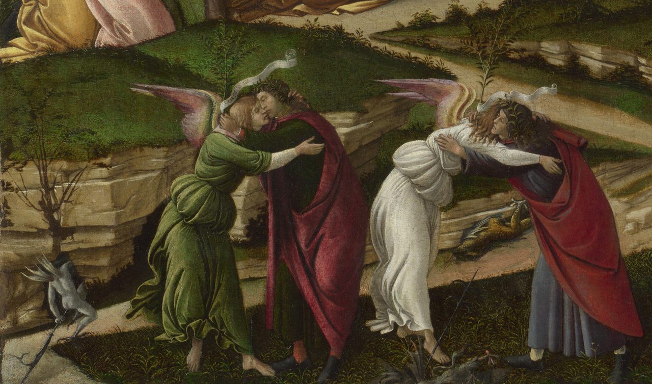 This detail of Sandro Boticelli’s “The Mystical Nativity” contains verdigris pigment.