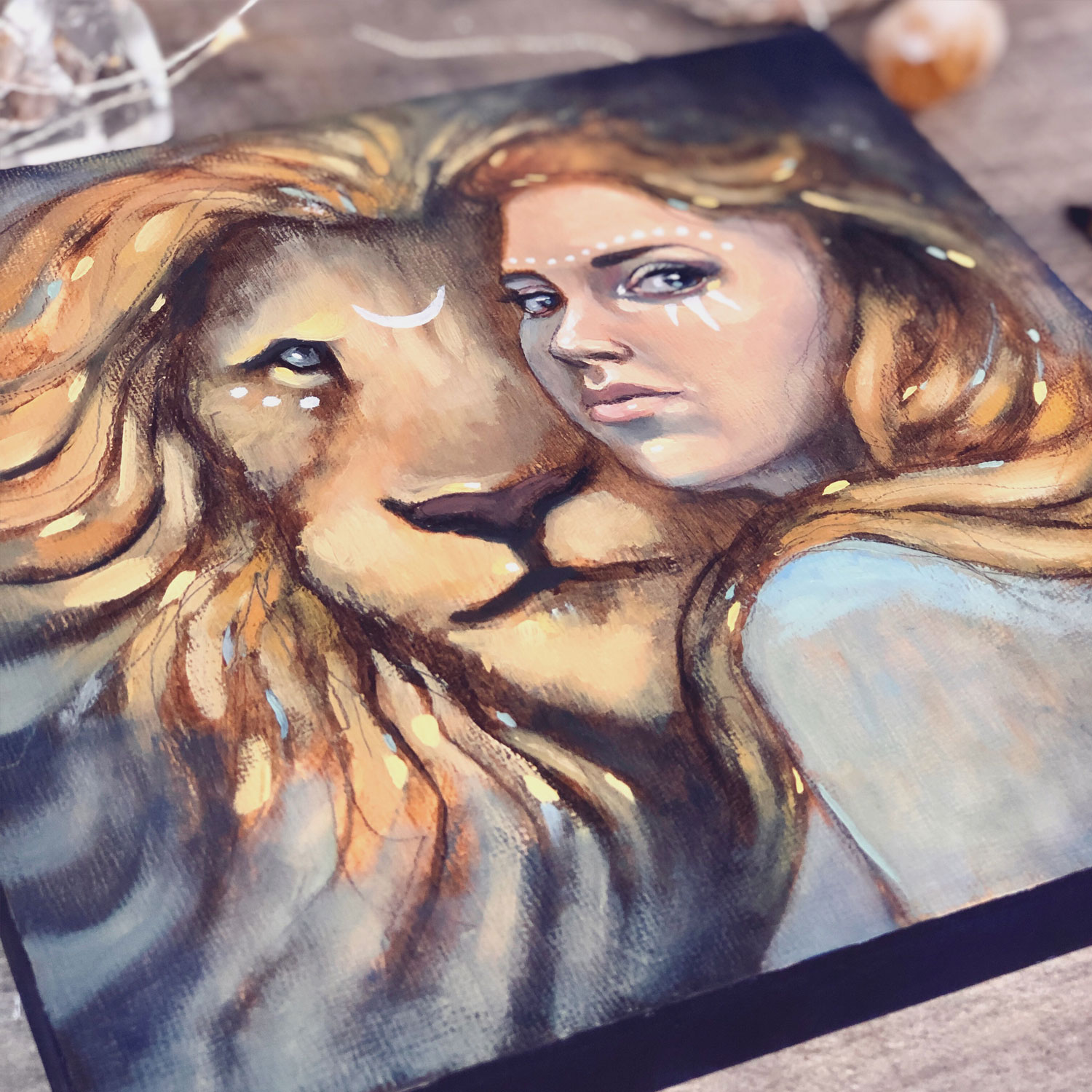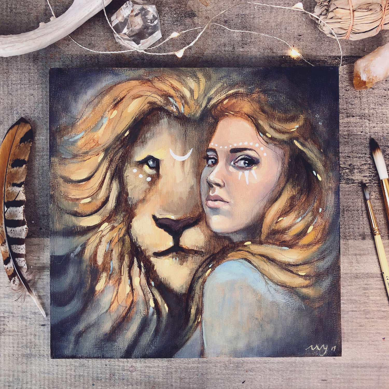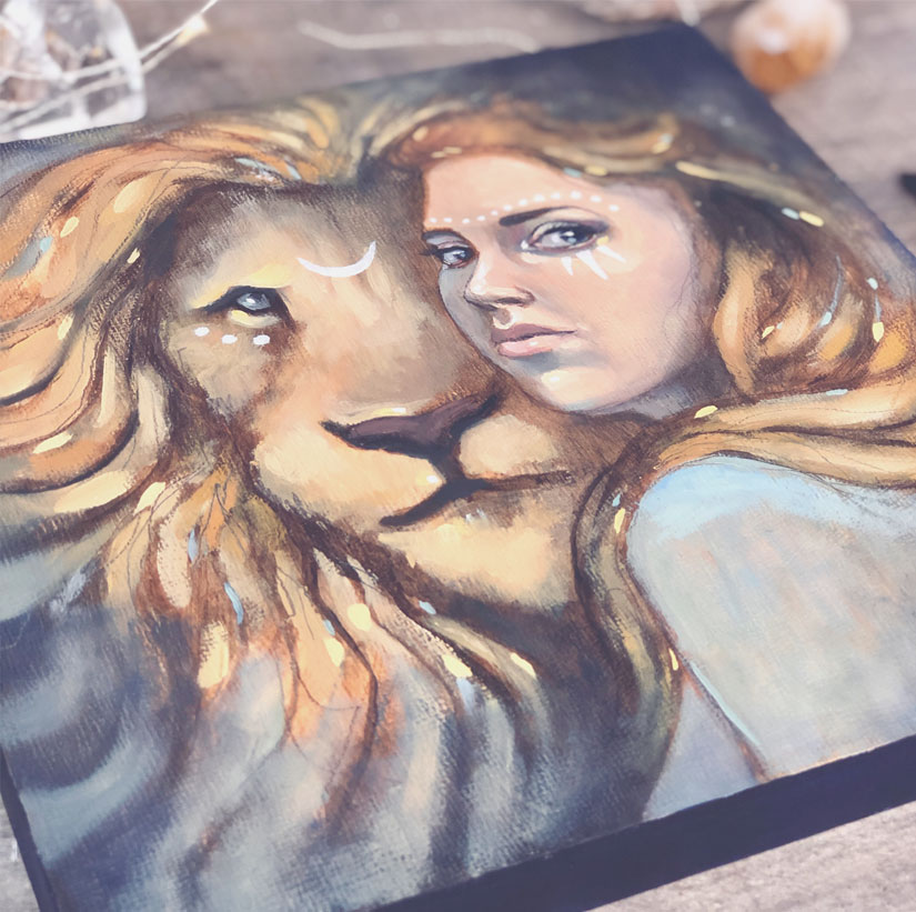 I loved creating this lion spirit animal piece. It was so much fun to jump into the painting with both acrylics and then oils. I truly encourage you to give it a go! I have never painted a lion before so this was a wonderful new experience for me.