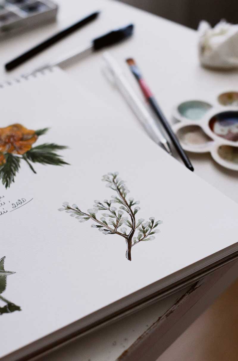 - Non dominant hand drawing. I use this one a lot to start my own paintings. Use your non-dominant hand to sketch from a reference image. I like doing this best vertically so put your surface up on a wall or easel. When we use our non-dominant hand we lose control and quiet the critical mind. It will feel awkward, just like being a beginner, but embrace that feeling and keep moving. Be open to the interesting outcomes! I love doing this exercise when I’m feeling blocked.