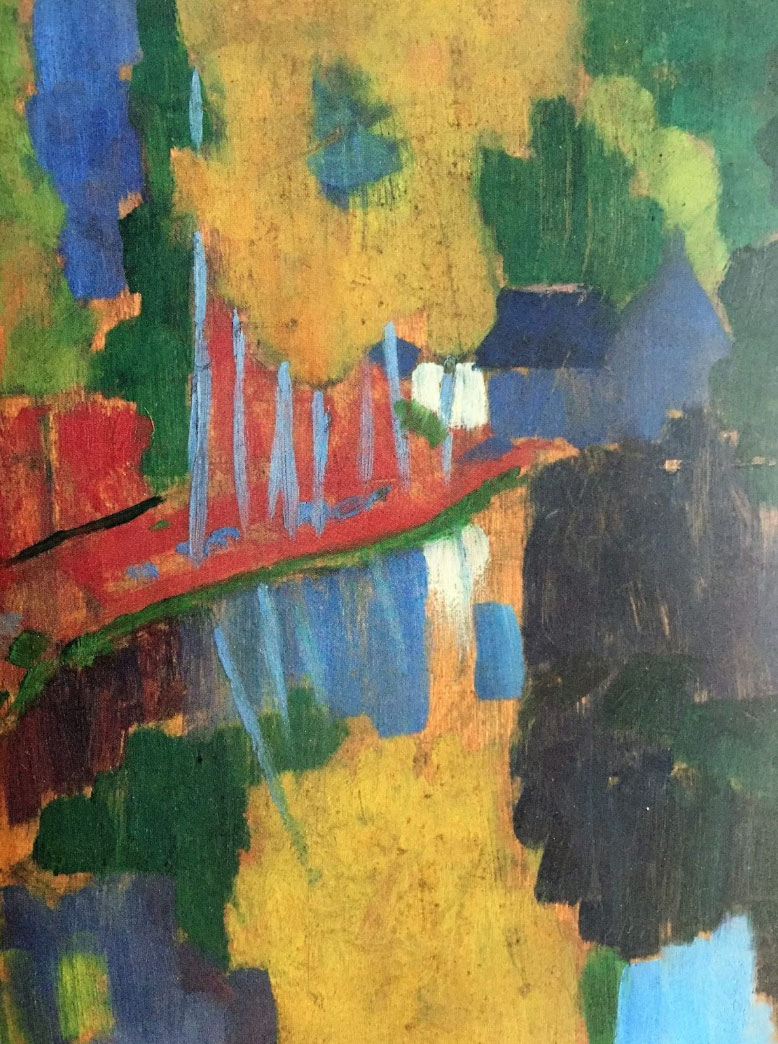 One day in 1888, Sérusier showed his friends at Julian a painting he had made under the guidance of Gauguin earlier that year in Pont-Aven, a district of rural Britanny which had hosted various artists’ groupings since the 1860s, and where the older painter, Gauguin, had based himself intermittently since 1886. Denis and his friends were so amazed by Sérusier’s work – a small landscape painted on the back of a cigar-box – that they formed an artistic movement based on the new artistic vision which it seemed to capture, naming themselves, after the Hebrew term for “prophet”, “Les Nabis”. They accorded such power to Sérusier’s particular painting that it became known as The Talisman.