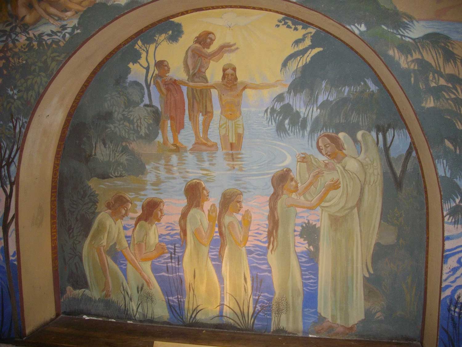When Denis was forty-one, his father died, an event that had a great personal impact on the artist. In 1919, after twenty-six years of marriage, Denis’s wife passed way. Heartbroken, he painted a chapel in her memory. The same year, he founded the Ateliers d’Art Sacré (literally “Workshops of Sacred Art”) with Georges Desvallières. The aim of this group was to reconcile religious faith with modern culture by producing art for religious settings – churches, cathedrals – which would dispense with the academicism and realism of previous approaches to such work, and to train a new generation of religious artists and craftsmen. The group renovated several churches between 1919 and the mid-1930s, when a lack of commissions forced them to disband. Amongst their most notable commissions was a set of paintings for the Église du Saint-Esprit in Paris, completed in 1934. Although Denis’s work from this period was profoundly influenced by his faith, he also produced murals for civic buildings across the 1920s-30s.