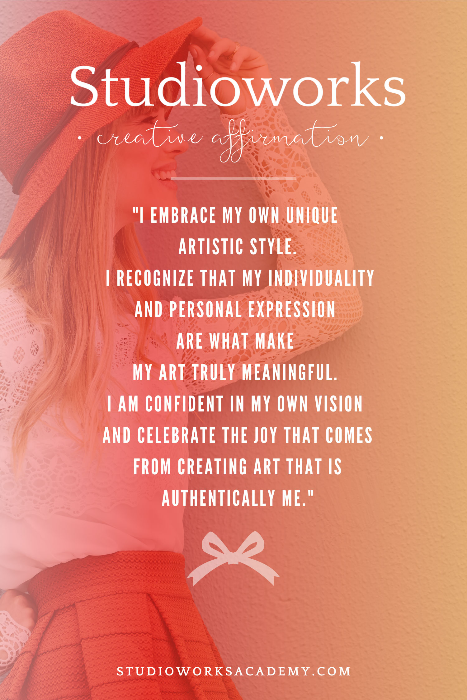 Each month we will have a positive affirmation. I recommend you print out this affirmation and put it in your sketchbook or somewhere in your studio. Recite the affirmation out loud each time you show up to create. Saying words aloud is powerful and can begin to re-write some of our own limiting beliefs or calm our fears. Try it now…