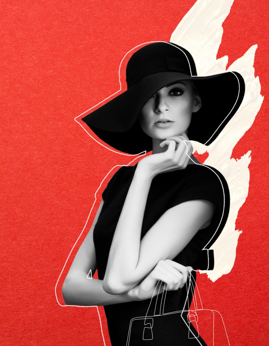 This month, I am inspired by the wonderful bold colors of our master artist, René Gruau. His color palette was often characterized by bold and contrasting colors, with a particular emphasis on black and white. He frequently used a limited color palette, relying on strong contrasts to create impact and depth. Some of his most iconic works feature a combination of black, white, and red, with the occasional addition of a bright, saturated color like blue or yellow. His use of color was often minimal and highly strategic, with each color was carefully chosen to convey a particular mood or tone. In general, Gruau's color choices were highly graphic and modern, and contributed to the distinctive, immediately recognizable style for which he is known. So let’s play around with this color palette and see how it feels!