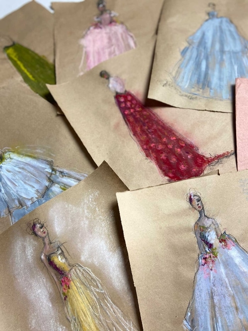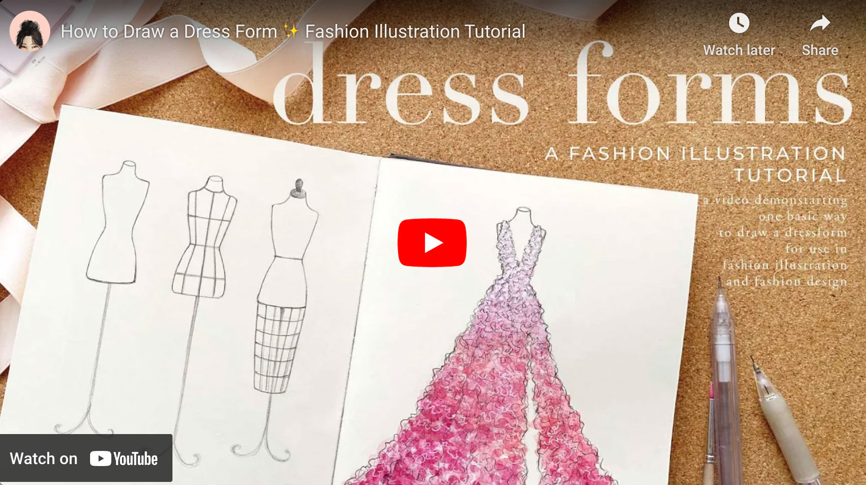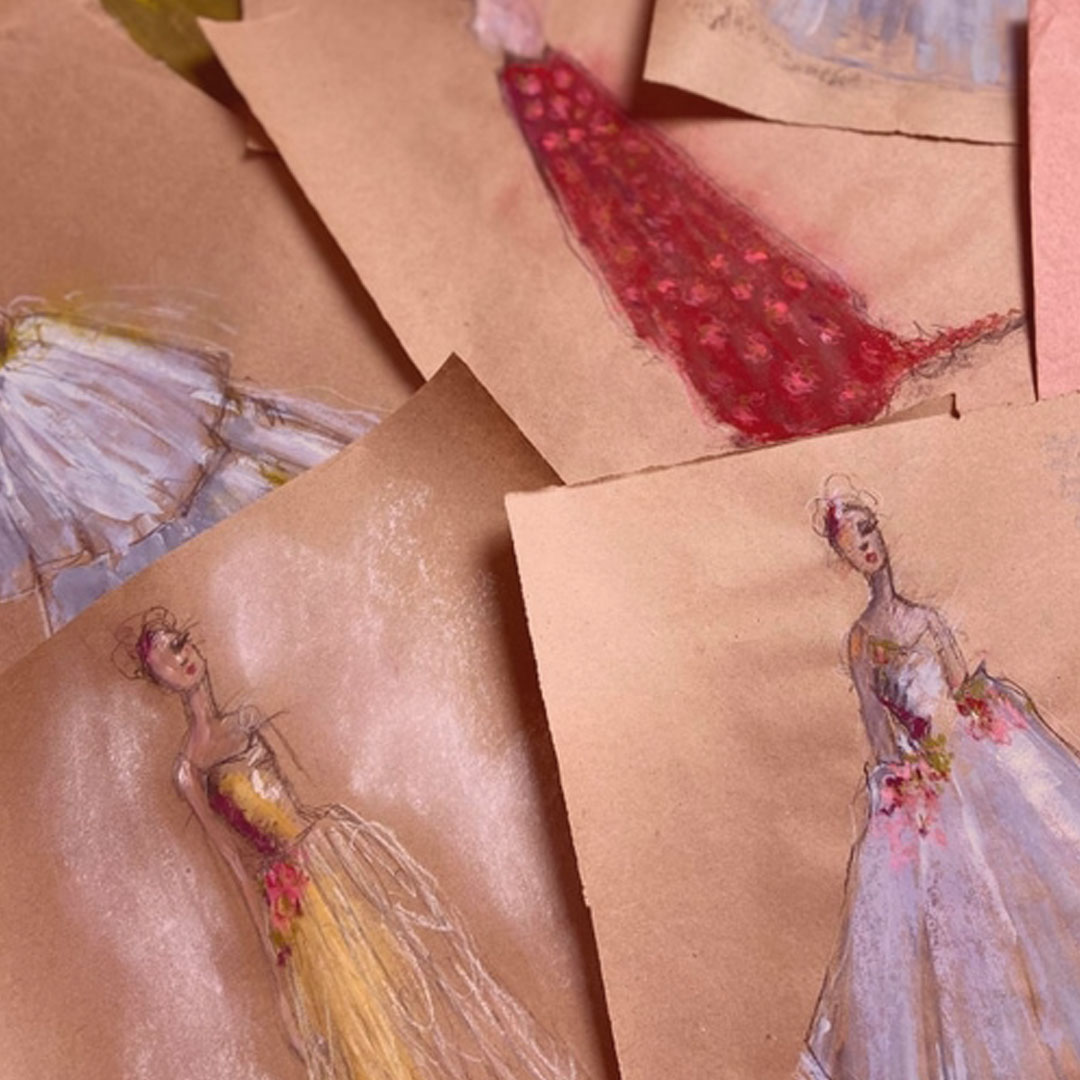 So let’s pretend we are fashion designers! Go ahead and create some beautiful fashion inspired sketches using whatever mediums you enjoy the most! Go bold and be confident! Refer back to your fashion preferences and use colors, textures and patterns YOU love. Have fun with this! If you want some expert guidance check out this wonderful lesson with our dear teacher, Renee Mueller!