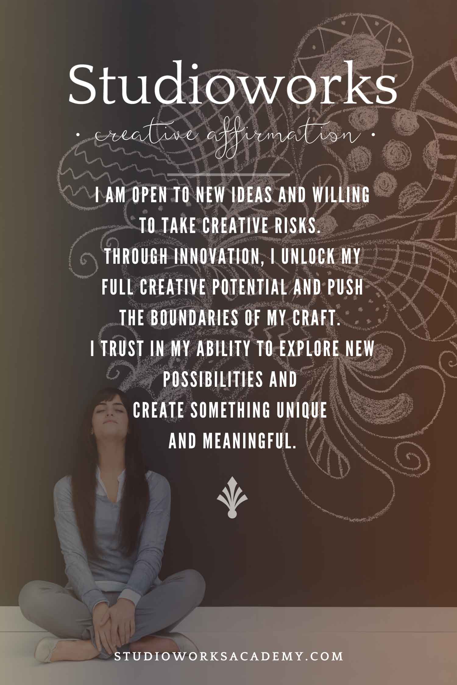 Each month we will have a positive affirmation. I recommend you print out this affirmation and put it in your sketchbook or somewhere in your studio. Recite the affirmation out loud each time you show up to create. Saying words aloud is powerful and can begin to re-write some of our own limiting beliefs or calm our fears. Try it now…