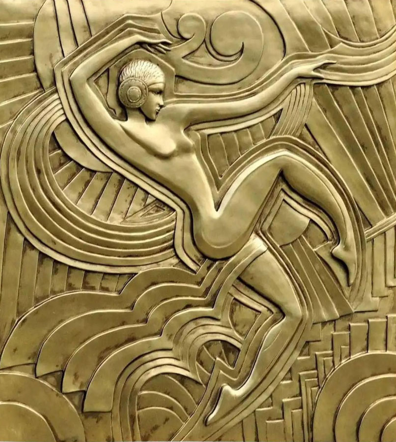 These symbols are all often seen in Art Deco designs which connect the goddess with this art movement. The connection between old and new is such a powerful thread that runs through Art Deco. Honoring ancient mythology while marveling at the sleek, new technology that was evolving speaks to the innovative and inspiring time of the Art Deco movement.