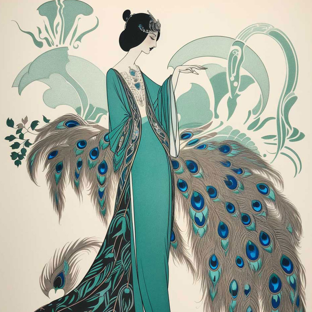 Some epochal artistic representations can be found in the works of Edward Mason Eggleston, Léon Bakst, Jean Dunand, Sonia Delauney, George Lepape, and René Lalique. For instance, in Smiling Through(1932), Eggleston’s use of bright, bold colors, geometric patterns, and emphasis on the female form beautifully exhibits the Art Deco flavor.