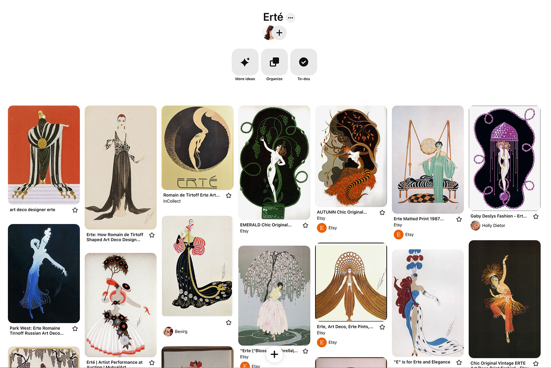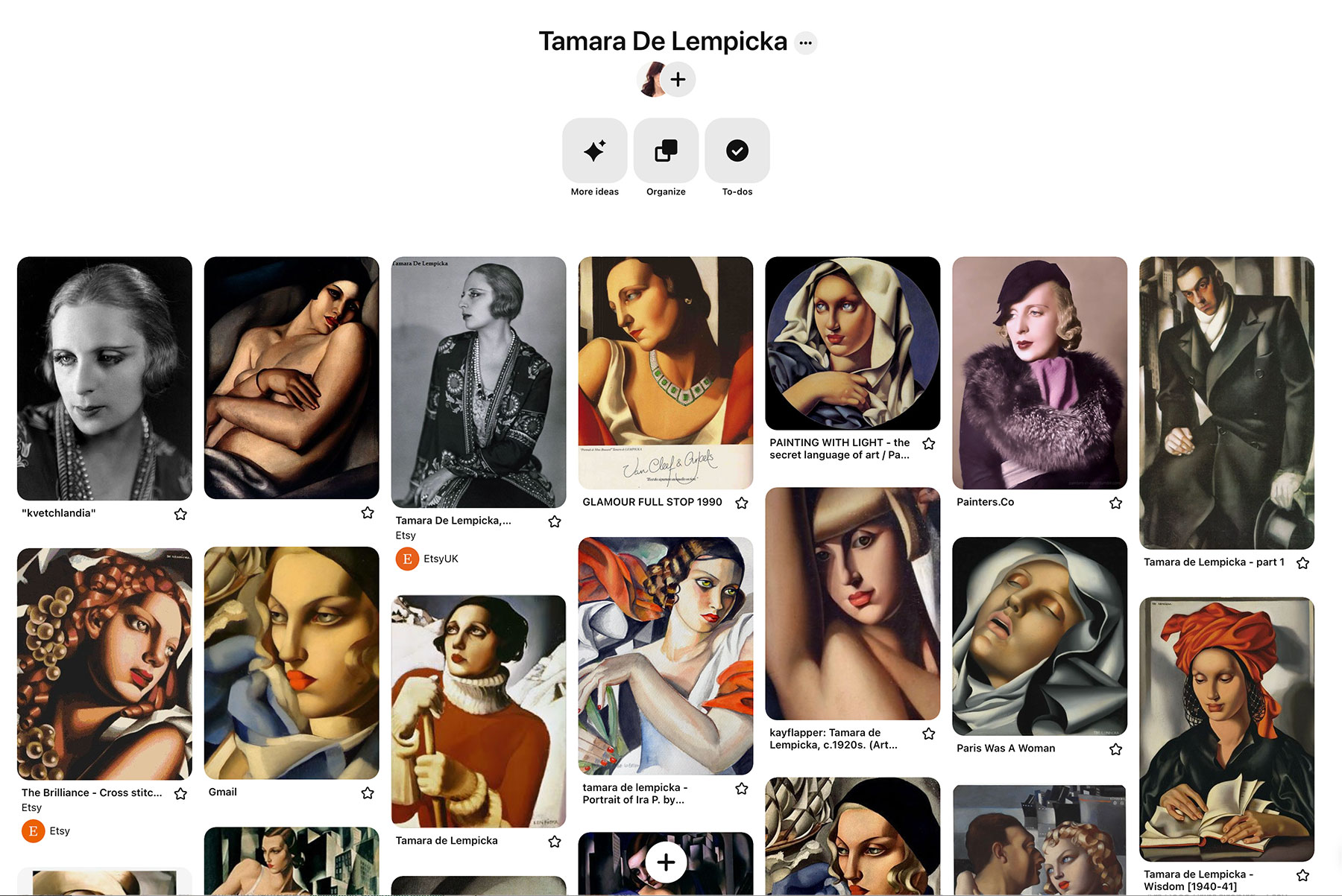 Check out the beautiful Pinterest boards of both Erté and Tamara De Lempicka works and see which piece resonate with you. Consider doing a master study of one or more of these OR create a piece inspired by these artists.