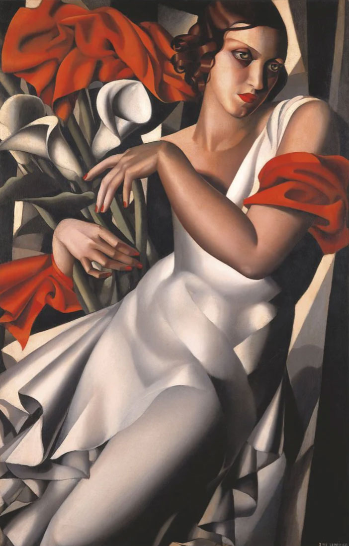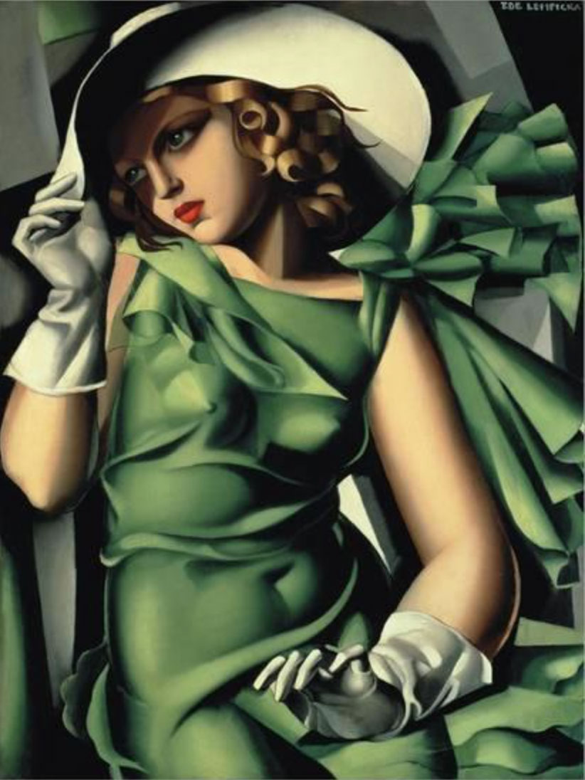 Another iconic painting by Lempicka is "Portrait of a Young Girl (Jeune Fille en Vert)," which was completed in 1930. The painting depicts a young woman wearing a green dress and is notable for its strong composition, striking use of color, and sensuous style.