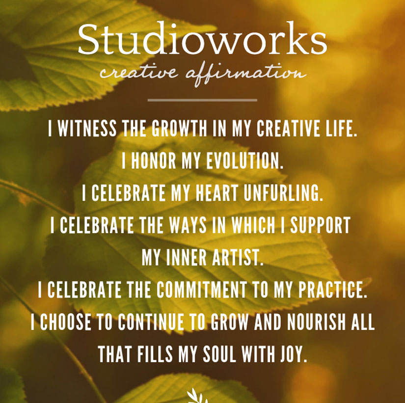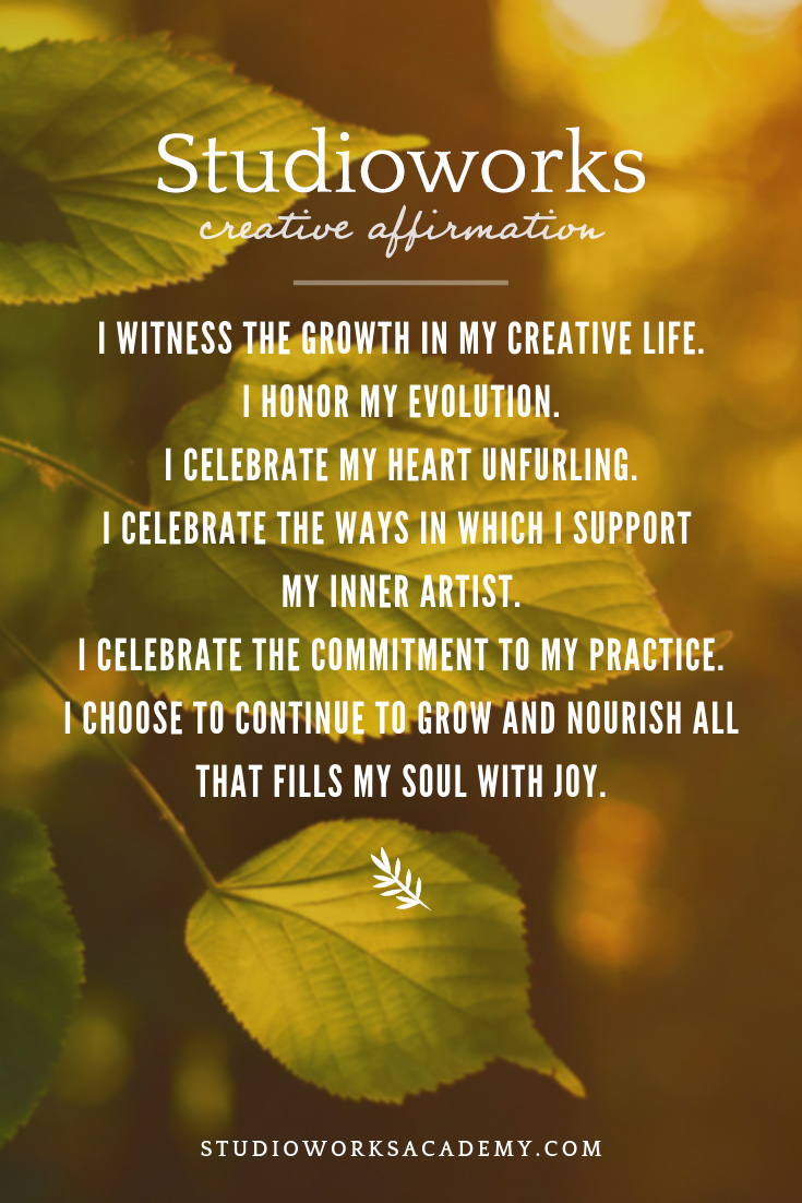 Each month we will have a positive affirmation. I recommend you print out this affirmation and put it in your sketchbook or somewhere in your studio. Recite the affirmation out loud each time you show up to create. Saying words aloud is powerful and can begin to re-write some of our own limiting beliefs or calm our fears. Try it now…