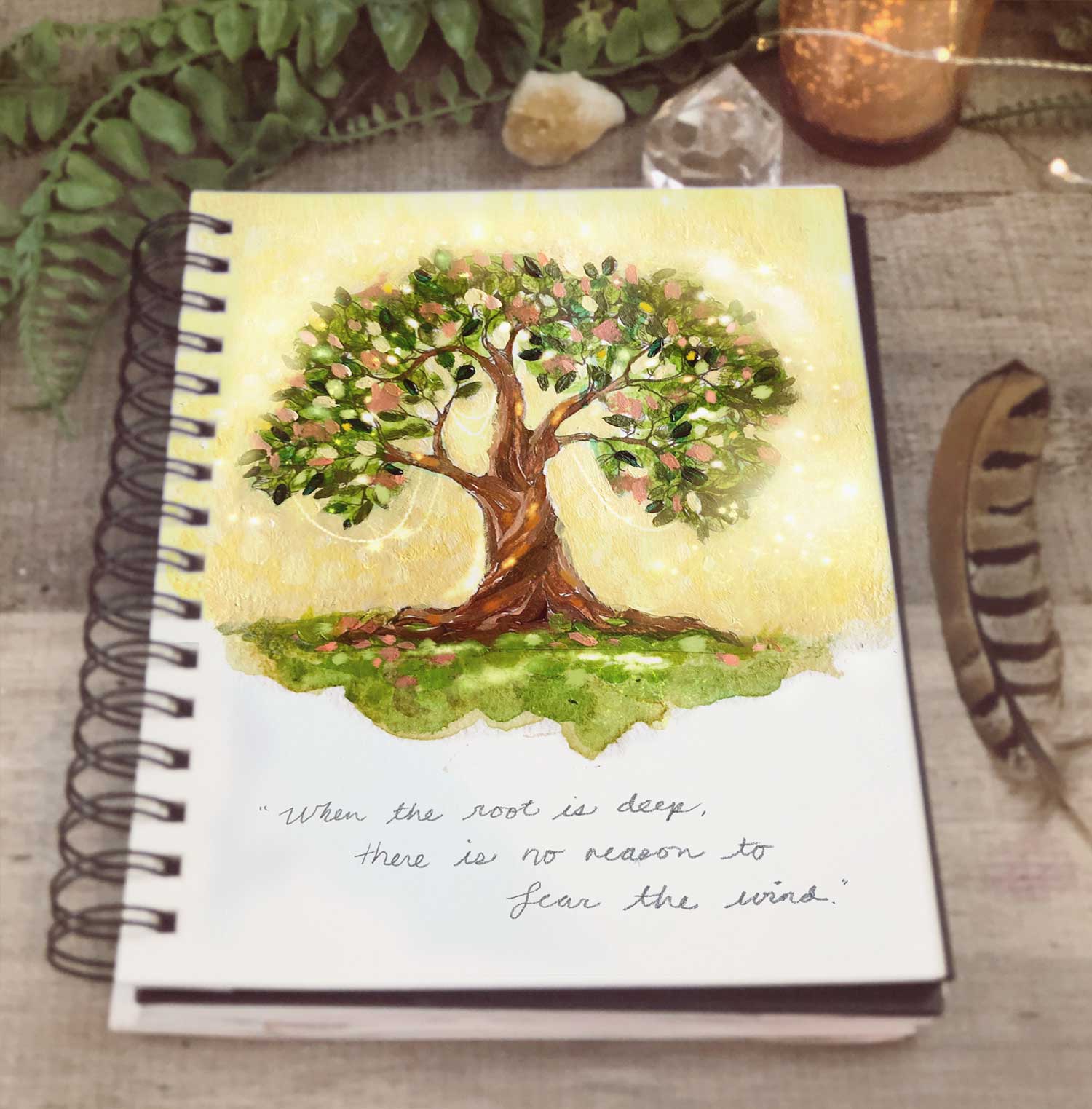 Our sketchbook theme this month is – (if you haven’t guessed it already) Trees. As mentioned, I believe a lot can be gained by connecting with the trees and with nature in general. The more we can connect with the power, wisdom and inspiration of the natural world, the more we see what is truly important, real and beautiful in our lives. Be free in your sketchbooks this month to express trees and the imagery of growth as it feels right to you.