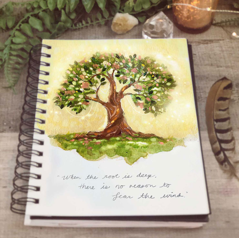 - Write down all the goals, dreams and actions you wish to take for your artistic path on a loose piece of paper. Make the list as long or as short as you like. Take time to really reflect on these words. You can make a copy and put it in your sketchbook if you like. Now take the loose paper and fold it into a small square. Bury it under a tree in your garden or somewhere close to your home. Say a quiet prayer, if that feels in alignment. When you pass that tree each day remember the dreams you gave to the earth. Have faith that they are achievable. Now, do the work.