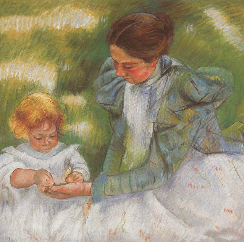 She never stopped growing in her artistic path, expanding her techniques beyond painting to pastels and printmaking. As you watch the slideshow, you will see how the Impressionists influenced her oil paintings, Degas inspired some of her pastel work and Japanese art impacted the design of her printmaking pieces! Ironically, this master of painting the mother, never bore her own children or married. She devoted her entire existence to her art and its evolution and growth.