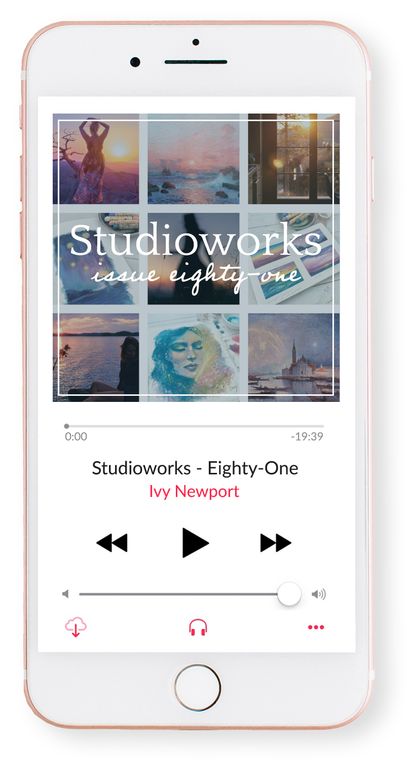 You can also listen to this month’s issue of the Studioworks journal. I find I love listening to books, podcasts and music while I draw, paint or go on a long walk. Enjoy.